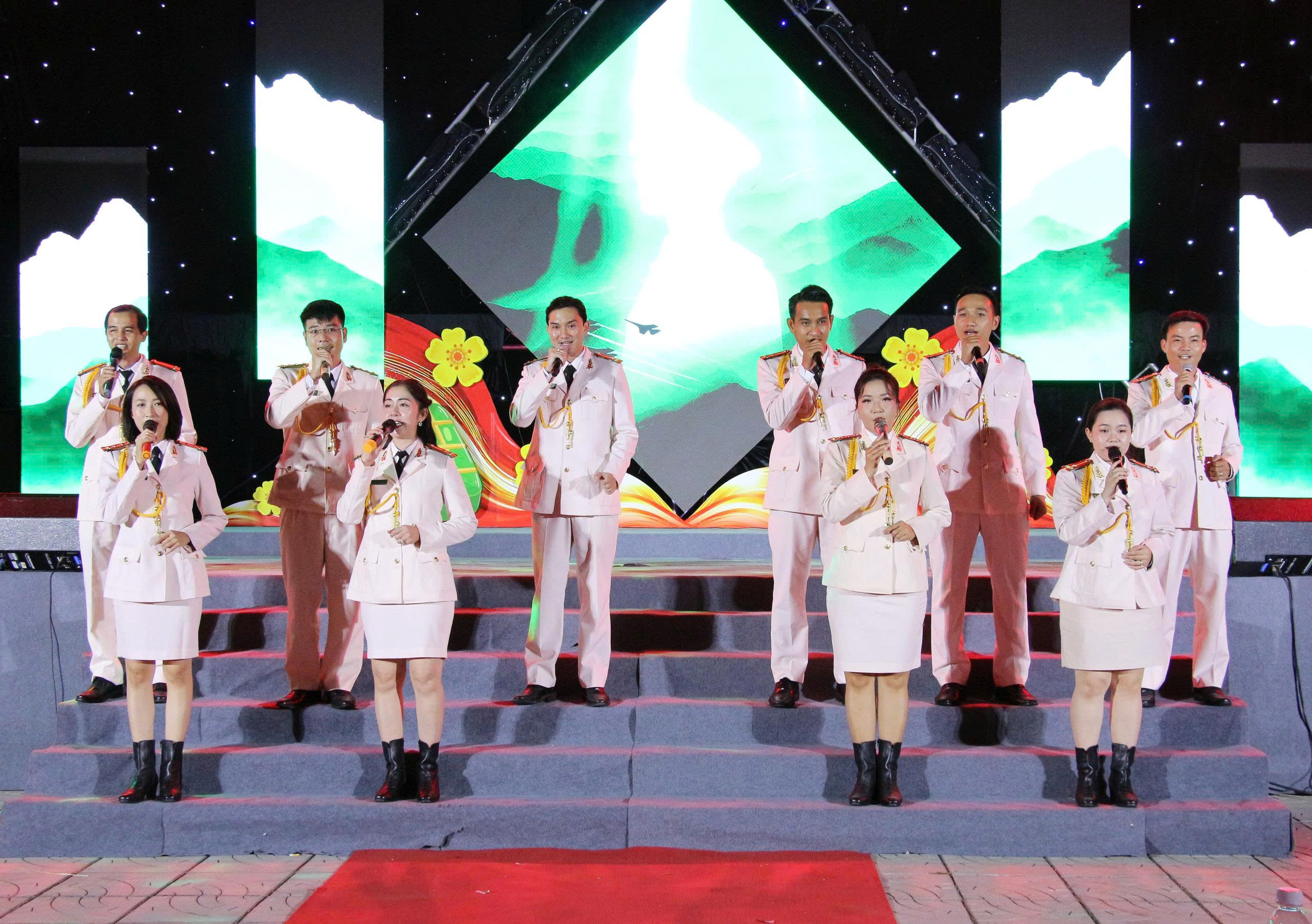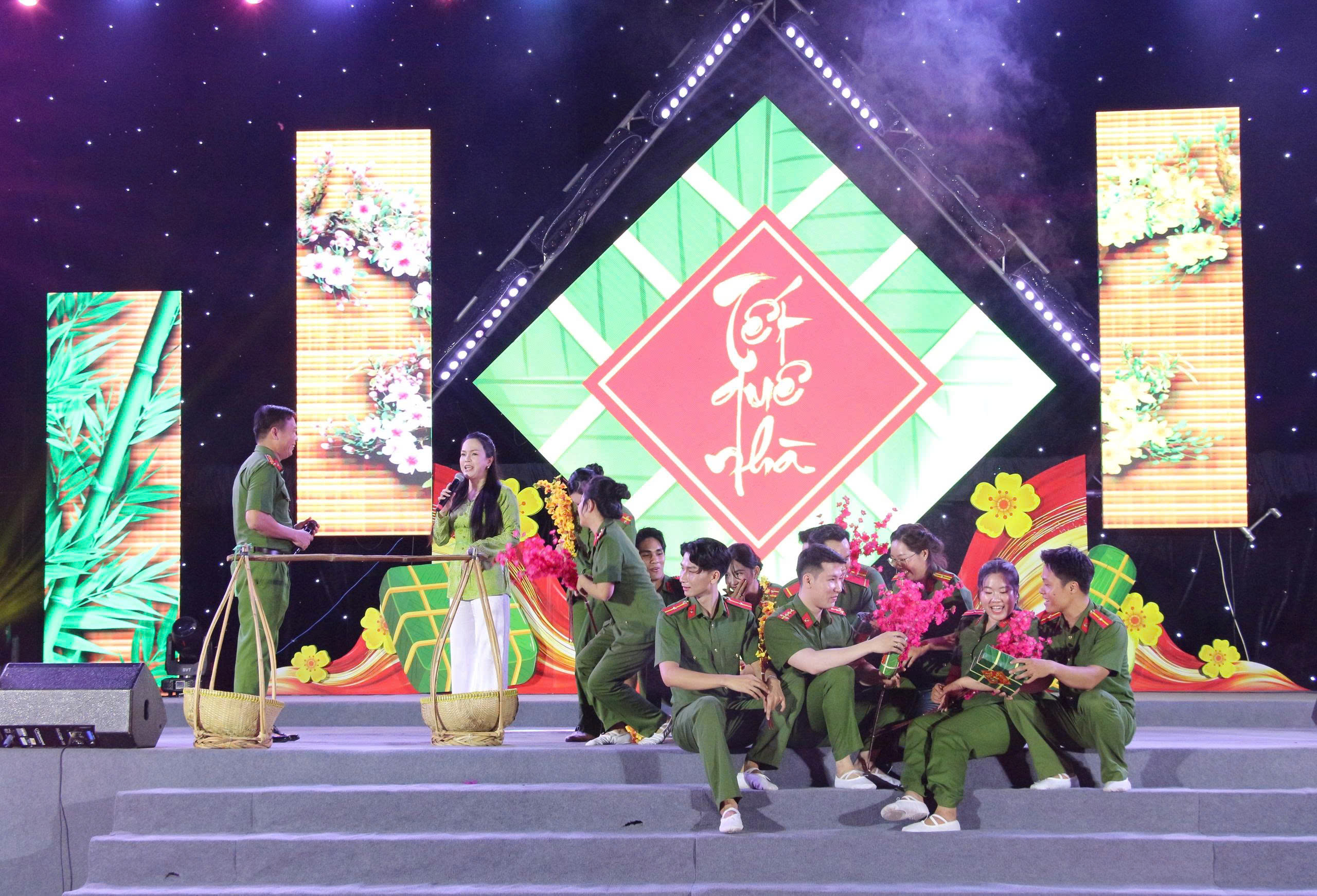 Chương trình văn nghệ diễn ra trong không khí sôi nổi, ấm áp với nhiều tiết mục đặc sắc do Đội Văn nghệ xung kích Công an tỉnh phối hợp cùng các nghệ sĩ, câu lạc bộ biểu diễn. Nội dung chương trình tập trung ca ngợi Đảng, Bác Hồ, mùa xuân và hình ảnh người chiến sĩ Công an nhân dân, tạo không khí vui tươi, gắn kết, khơi dậy niềm tự hào và tinh thần trách nhiệm trong mỗi cán bộ, chiến sĩ.