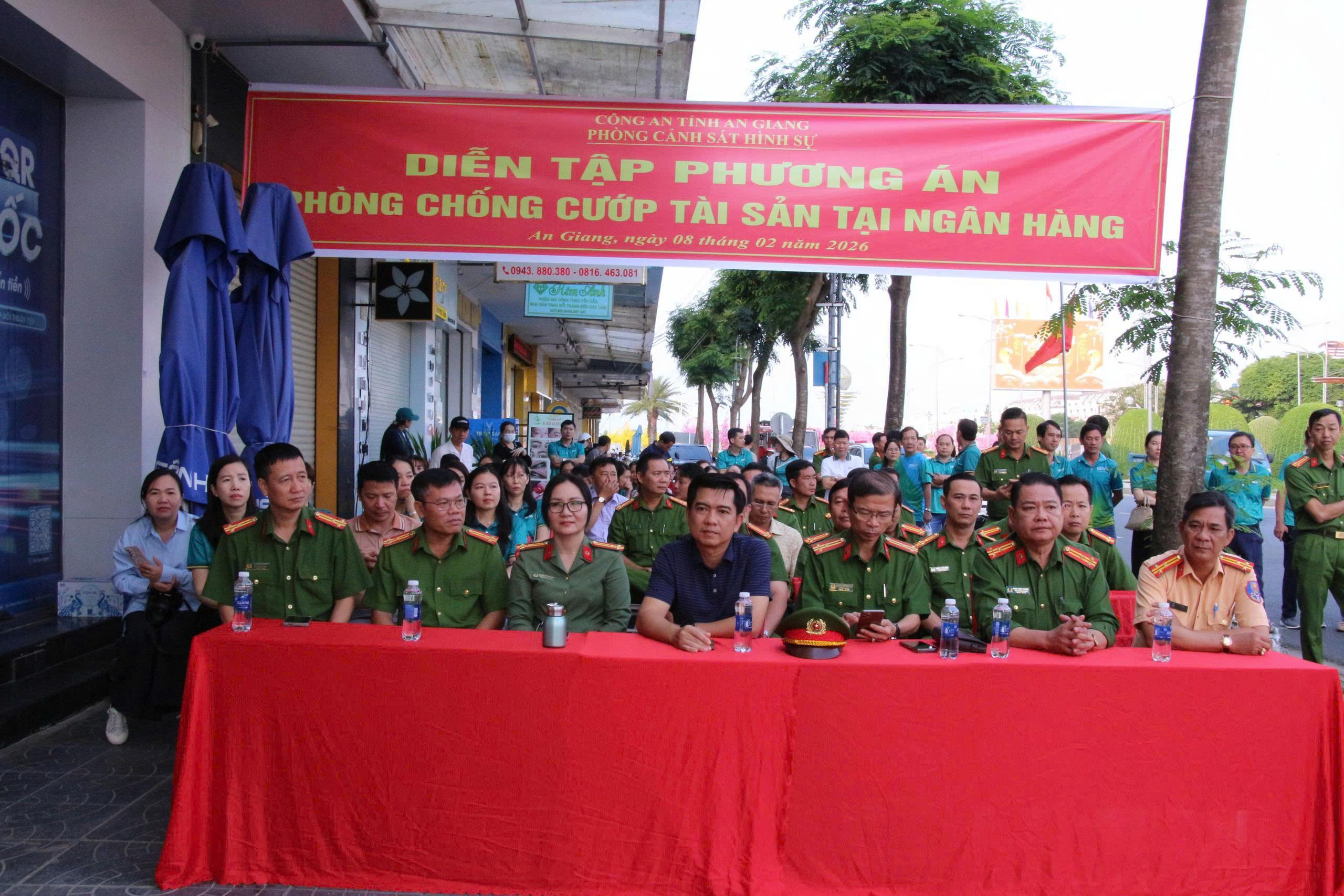 ‎Trước diễn biến các vụ cướp ngân hàng gần đây tại nhiều tỉnh, thành phố có chiều hướng manh động, sáng 08-2, Phòng Cảnh sát hình sự Công an tỉnh An Giang tổ chức diễn tập phương án xử lý tình huống cướp tài sản tại ngân hàng trên địa bàn phường Rạch Giá. Buổi diễn tập huy động nhiều lực lượng nghiệp vụ tham gia, phối hợp chặt chẽ với ngân hàng nhằm kiểm tra khả năng chỉ huy, hiệp đồng tác chiến, nâng cao hiệu quả xử lý các tình huống phức tạp, bảo đảm an toàn tuyệt đối cho người dân và tài sản.