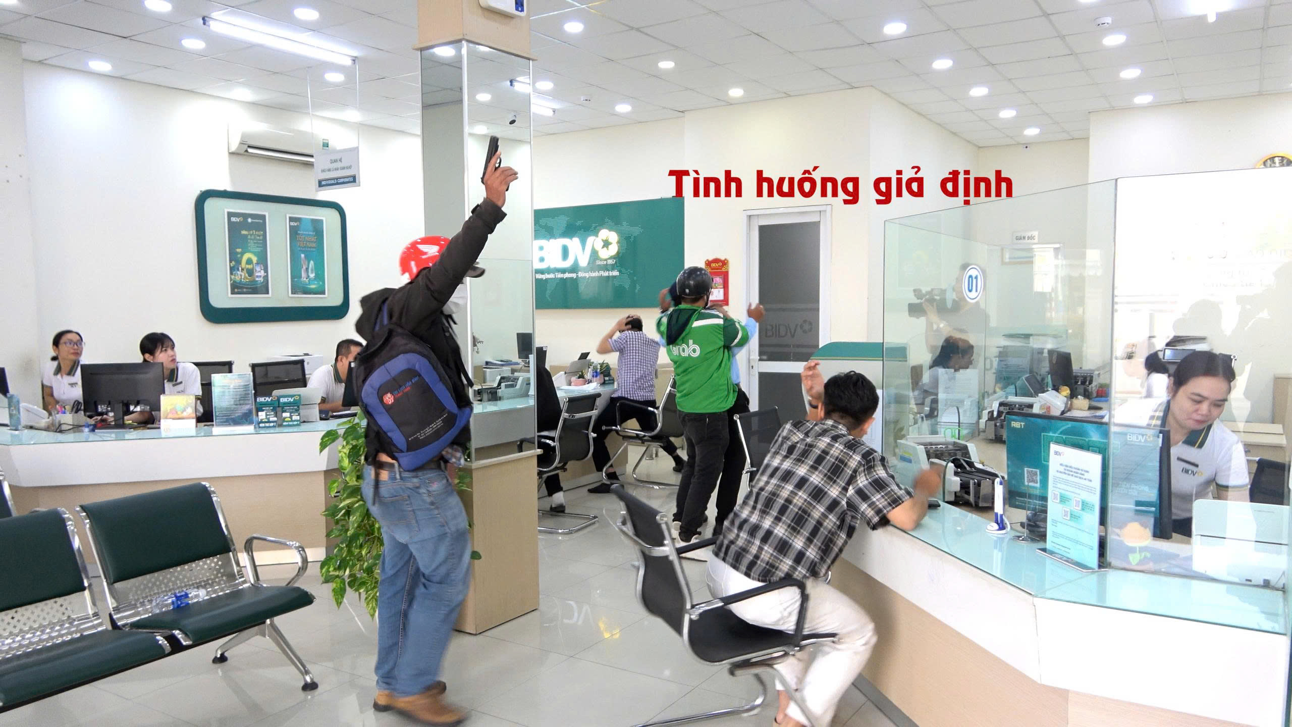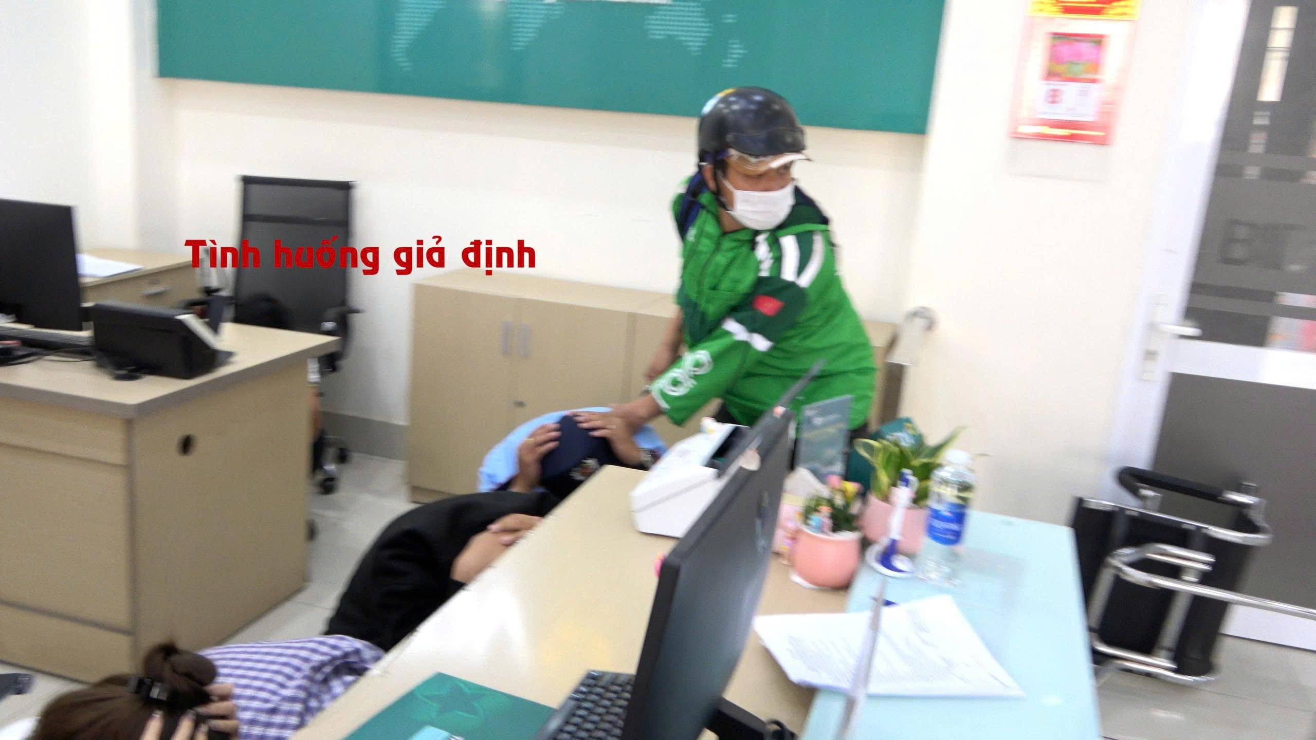 Tình huống giả định 02 tên cướp vào ngân hàng dùng vũ khí khống chế khách hàng và nhân viên giao dịch cướp tiền.