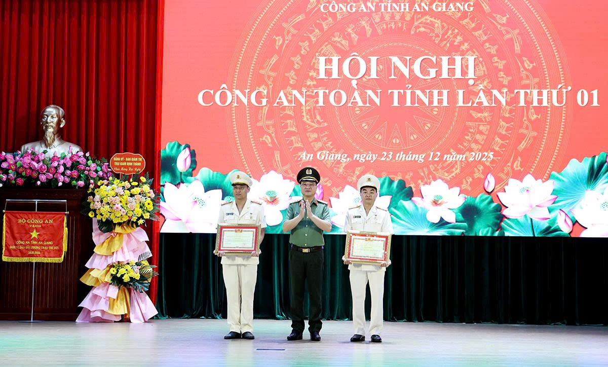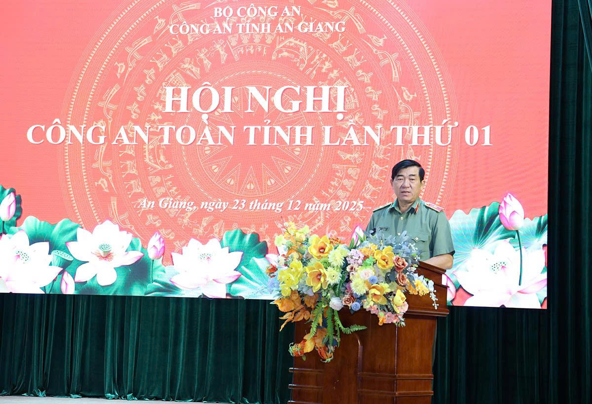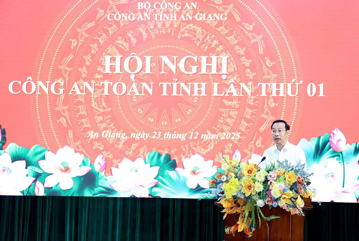 Ngày 23/12/2025, Công an tỉnh An Giang tổ chức Hội nghị Công an toàn tỉnh lần thứ 1. Thượng tướng Phạm Thế Tùng, Thứ trưởng Bộ Công an và đồng chí Nguyễn Thanh Nhàn, Phó Bí thư Thường trực Tỉnh ủy, Chủ tịch HĐND tỉnh dự, phát biểu chỉ đạo tại Hội nghị. Thiếu tướng Nguyễn Văn Hận, Uỷ viên Ban thường vụ Tỉnh uỷ, Giám đốc Công an tỉnh chủ trì Hội nghị.