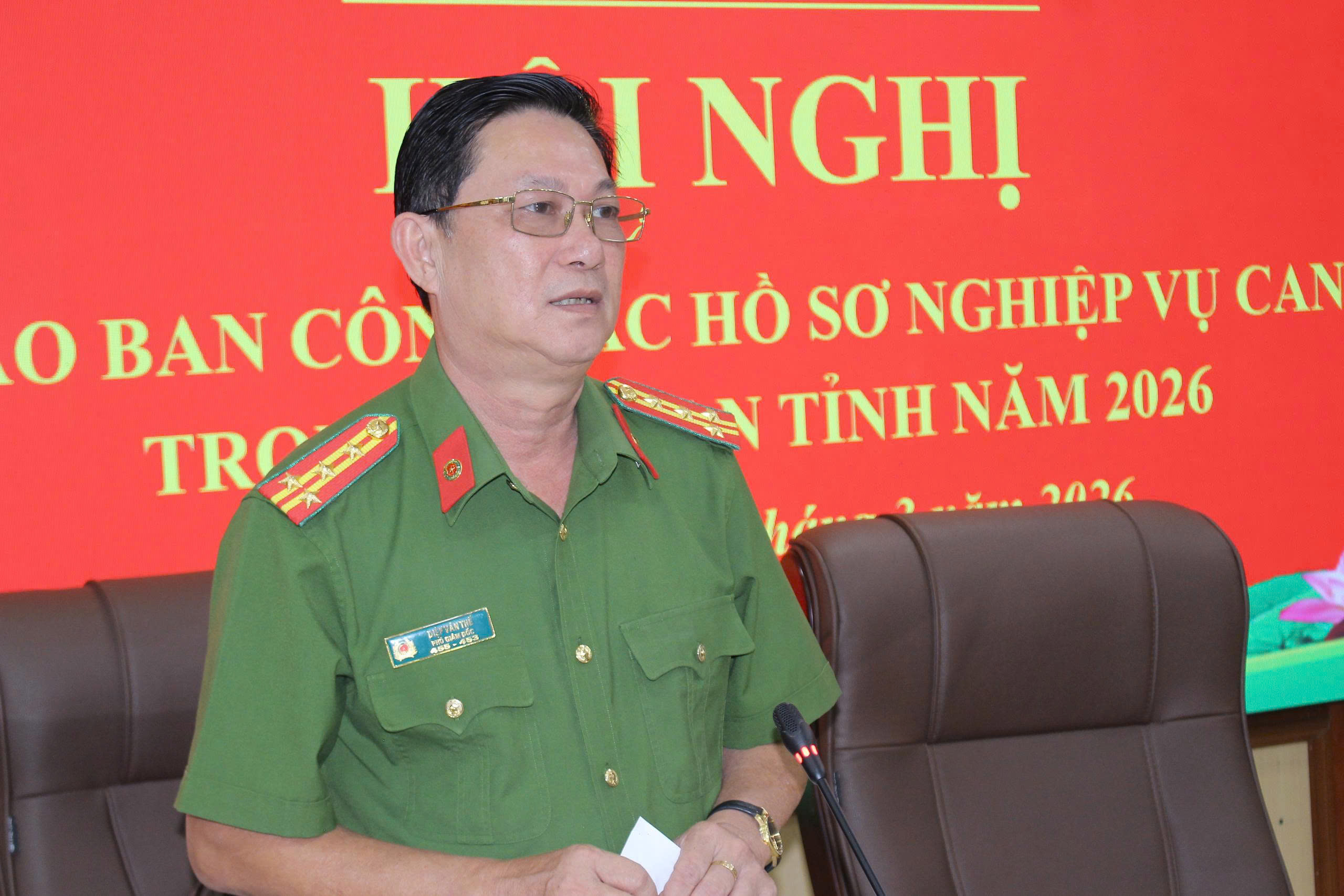 Phát biểu tại hội nghị, Đại tá Diệp Văn Thế ghi nhận những kết quả đạt được trong công tác lập, quản lý và khai thác hồ sơ nghiệp vụ của lực lượng hồ sơ nghiệp vụ CAND trong toàn tỉnh. Đồng chí đề nghị thời gian tới, Công an các đơn vị, địa phương tiếp tục bám sát chương trình, chỉ tiêu công tác năm 2026; đổi mới nội dung, phương pháp thực hiện; hướng dẫn lực lượng Công an cơ sở thực hiện hiệu quả các quy định về công tác hồ sơ nghiệp vụ, góp phần hoàn thành tốt nhiệm vụ chính trị được giao.