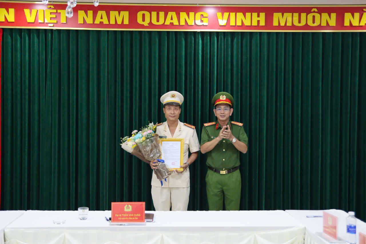 Ngày 14/3/2026, Công an tỉnh An Giang tổ chức Lễ công bố Quyết định của Giám đốc Công an tỉnh về công tác cán bộ. Đại tá Trần Văn Cung, Phó Giám đốc Công an tỉnh chủ trì buổi lễ.