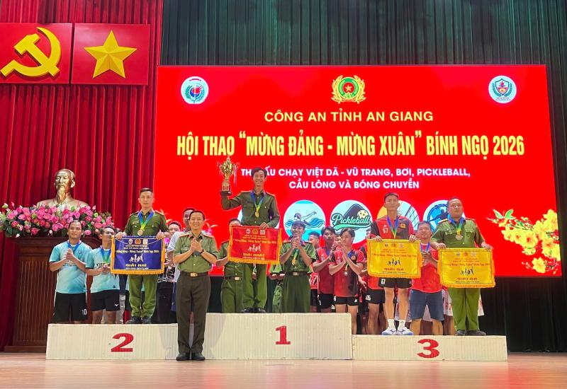 Hội thao mừng Đảng, mừng Xuân Bính Ngọ 2026 của Công an tỉnh An Giang diễn ra với nhiều nội dung thi đấu phong phú, gồm: bóng chuyền nam, chạy việt dã vũ trang, bơi, pickleball và cầu lông, thu hút sự tham gia tích cực của cán bộ, chiến sĩ các đơn vị. Các nội dung thi đấu hứa hẹn mang đến những màn tranh tài sôi nổi, hấp dẫn, góp phần cổ vũ khí thế thi đua ngay từ những ngày đầu năm mới, tạo động lực để toàn lực lượng Công an An Giang quyết tâm hoàn thành xuất sắc nhiệm vụ bảo đảm an ninh, trật tự trên địa bàn tỉnh./.