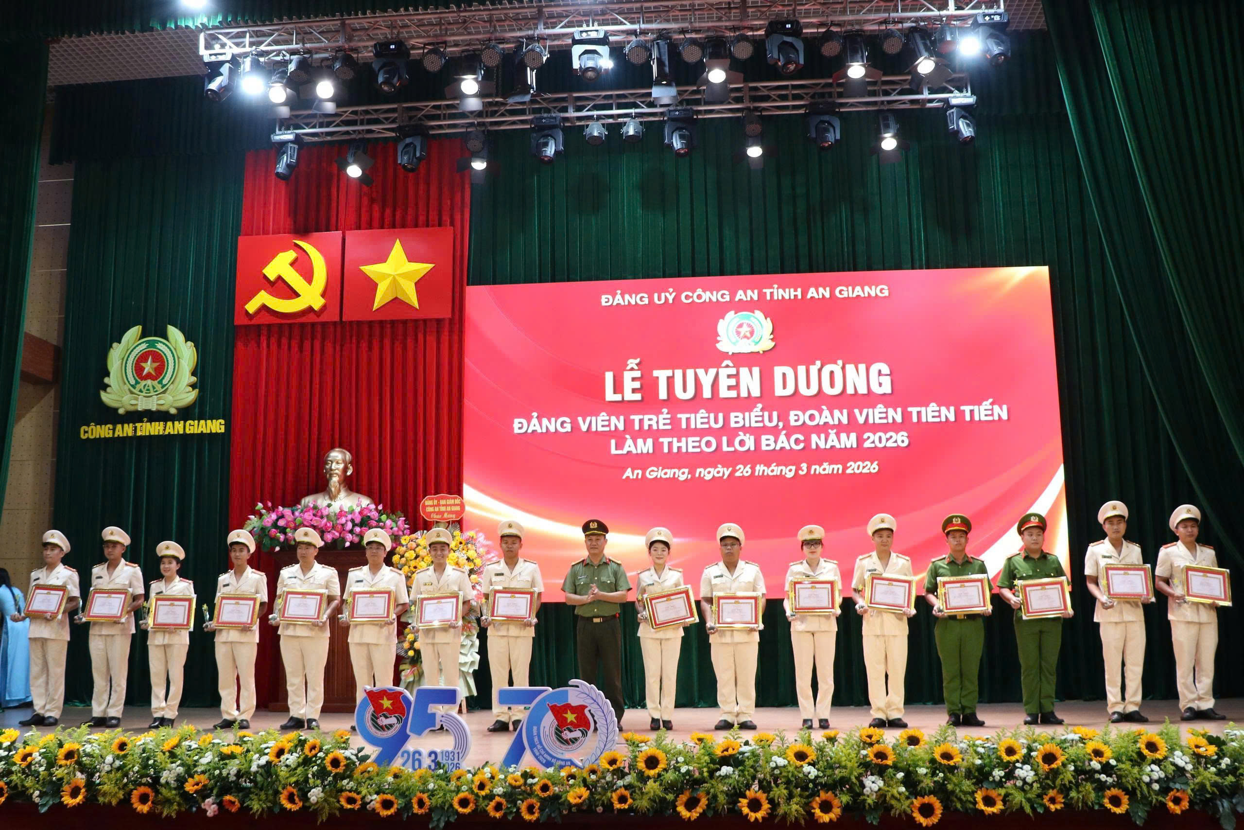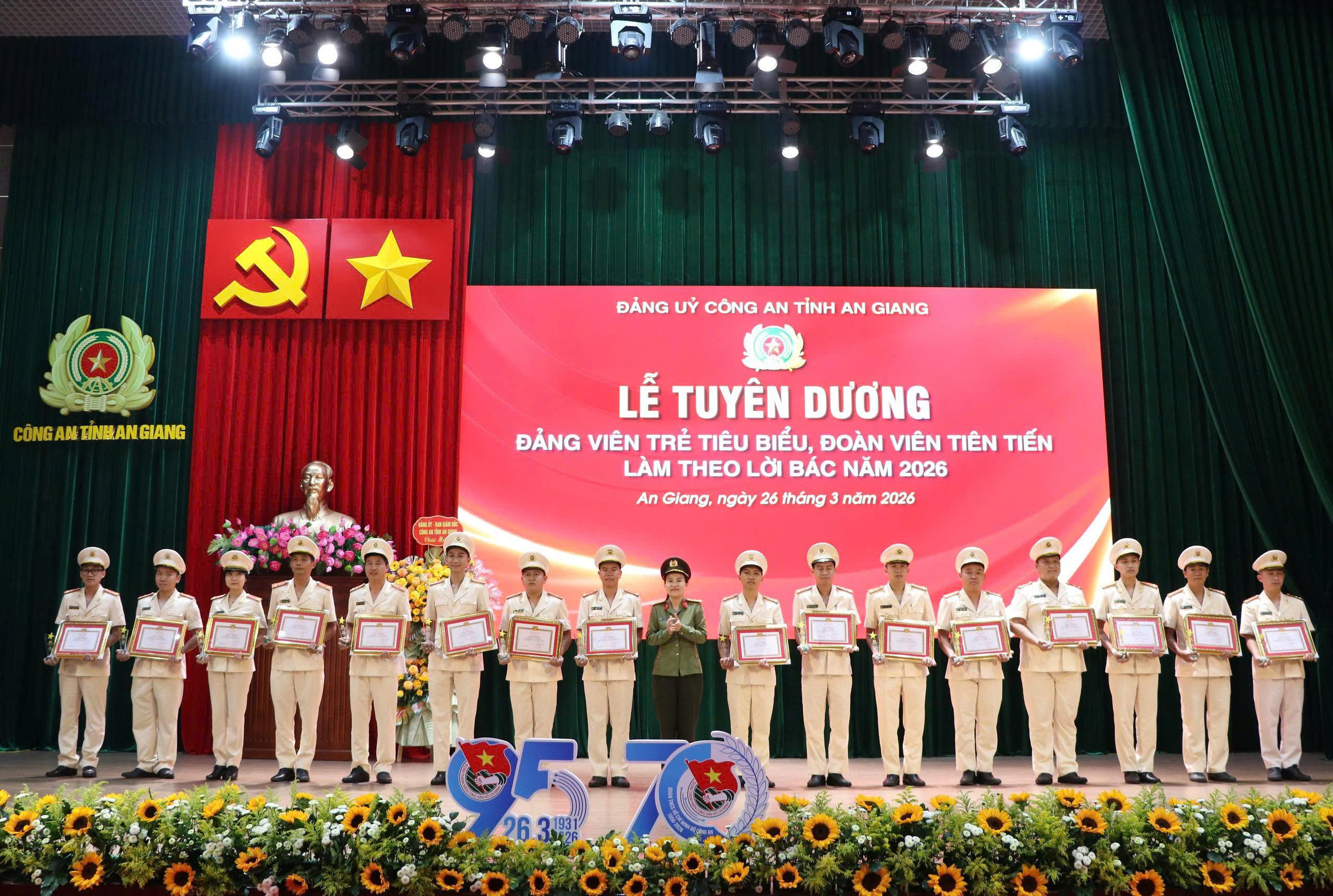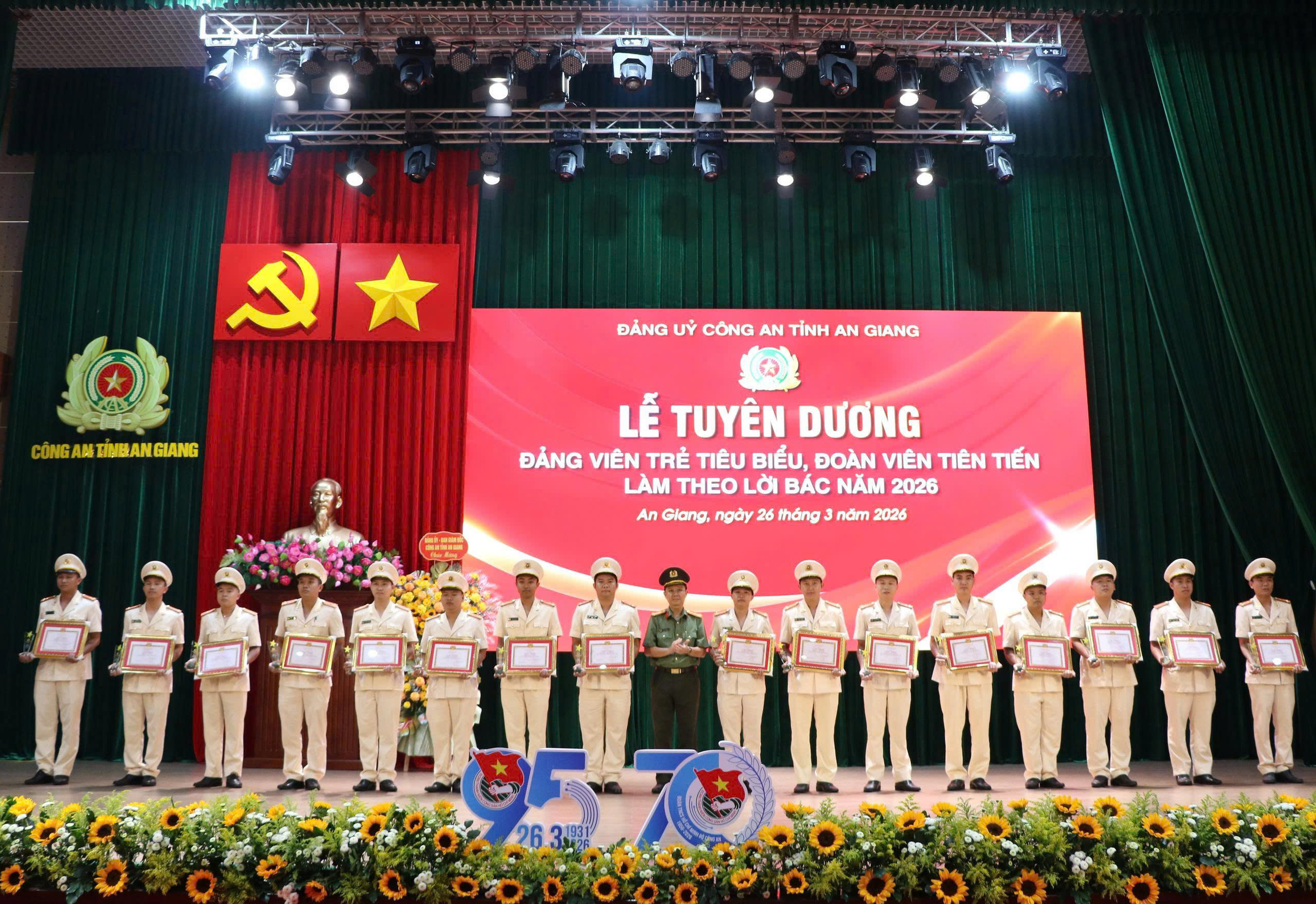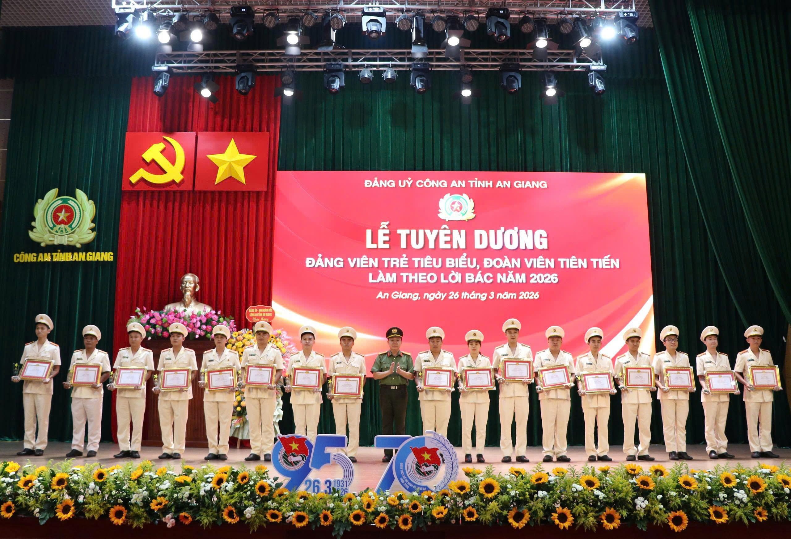 ‎Chiều ngày 26/3/2026, Công an tỉnh An Giang tổ chức Lễ kỷ niệm 95 năm Ngày thành lập Đoàn Thanh niên Cộng sản Hồ Chí Minh (26/3/1931 – 26/3/2026), 70 năm Ngày truyền thống Đoàn Thanh niên Cộng sản Hồ Chí Minh Bộ Công an (1956 – 2026), gắn với tuyên dương đảng viên trẻ tiêu biểu, đoàn viên tiên tiến làm theo lời Bác. Dự và chỉ đạo buổi Lễ có đồng chí Đại tá Lê Phú Thạnh – Tỉnh uỷ viên, Phó Bí thư Đảng uỷ, Phó Giám đốc Công an tỉnh.