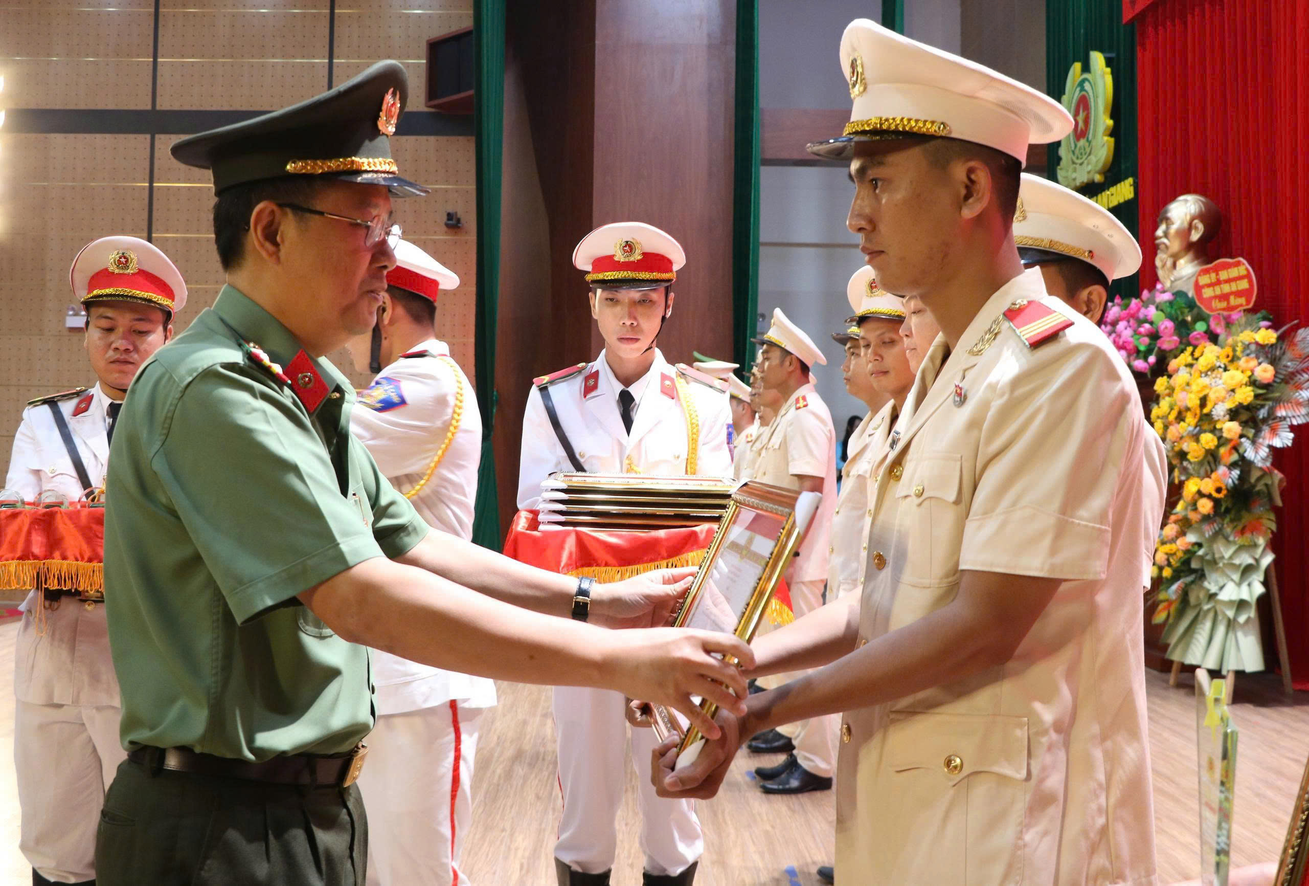 Đồng chí Đại tá Lê Phú Thạnh – Phó Giám đốc Công an tỉnh trao Giấy khen cho các đảng viên trẻ tiêu biểu, đoàn viên tiên tiến làm theo lời Bác.