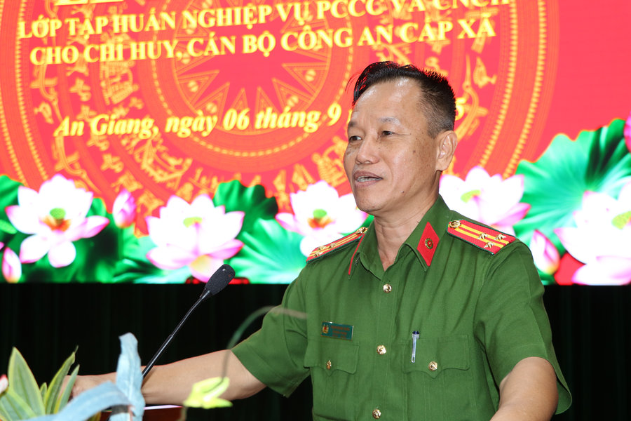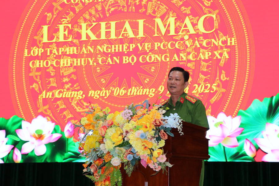 Sáng 6/9/2025, Công an tỉnh An Giang tổ chức khai giảng lớp tập huấn nghiệp vụ phòng cháy, chữa cháy và cứu nạn, cứu hộ (PCCC và CNCH) cho chỉ huy, cán bộ Công an cấp xã trên địa bàn tỉnh. Đồng chí Đại tá Diệp Văn Thế, Phó Giám đốc Công an tỉnh An Giang dự và chủ trì buổi lễ. Tham gia lớp tập huấn có hơn 200 cán bộ, chiến sĩ Công an cấp xã.