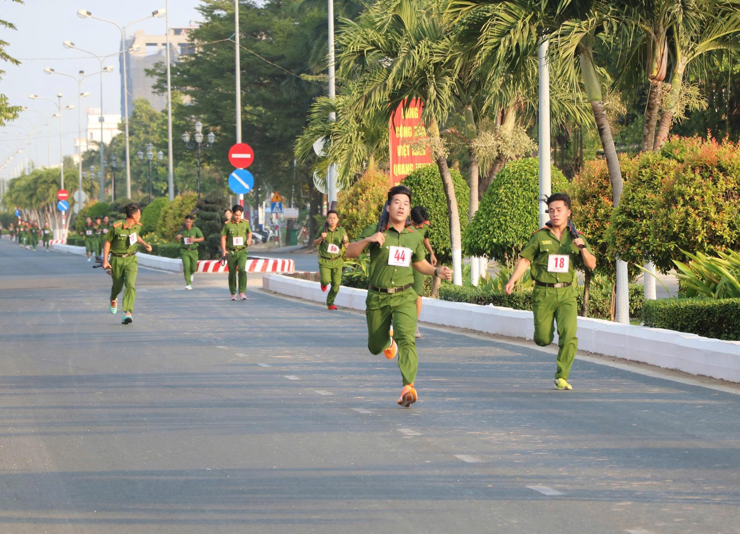 Đối với nội dung chạy vũ trang nam, các vận động viên thi đấu trong trang phục, trang bị vũ trang theo đúng quy định, bảo đảm tuyệt đối an toàn, chấp hành nghiêm điều lệnh Công an nhân dân. Quá trình thi đấu diễn ra khẩn trương, đúng quy trình, thể hiện khả năng chịu đựng, kỹ năng vận động linh hoạt cùng tinh thần sẵn sàng chiến đấu của cán bộ, chiến sĩ. Xuyên suốt các nội dung thi, các vận động viên đã phát huy tinh thần thi đấu đoàn kết, trung thực, bền bỉ trên từng chặng đường chạy, hoàn thành cự ly theo đúng yêu cầu của Ban Tổ chức.