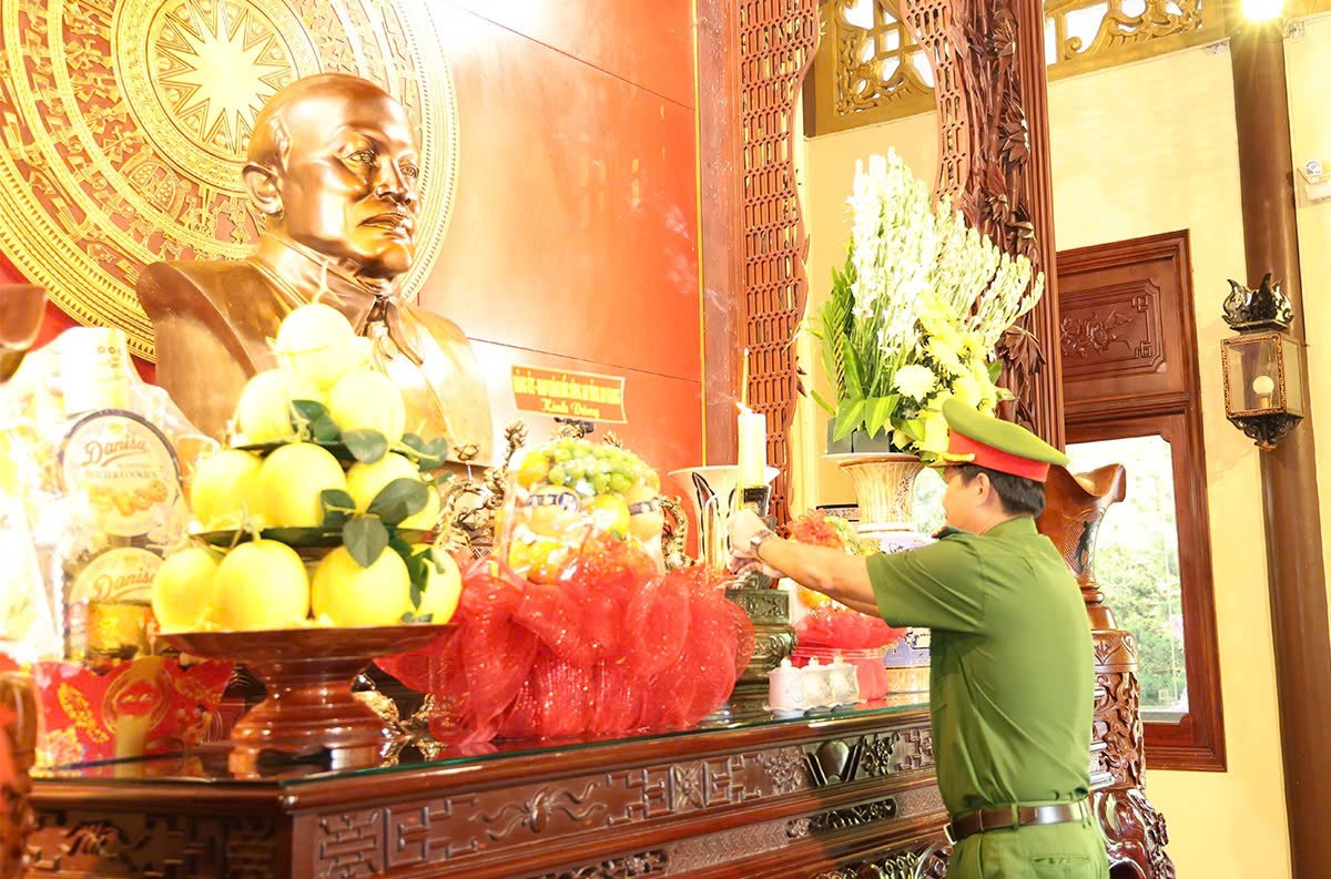 Trước đó, sáng cùng ngày, tại Khu lưu niệm Chủ tịch Tôn Đức Thắng, Đại tá Nguyễn Nhật Trường, Phó Giám đốc Công an tỉnh cùng các thành viên trong đoàn đã đến dâng hoa, dâng hương tưởng nhớ Chủ tịch Tôn Đức Thắng – vị lãnh tụ kiệt xuất của dân tộc, người con của quê hương Mỹ Hòa Hưng hiền hòa mến khách, của mảnh đất Nam bộ thành đồng.