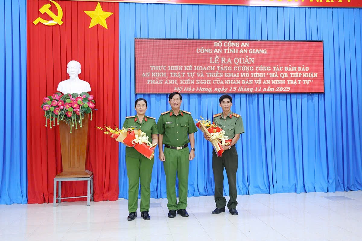 Sáng ngày 15/11/2025, Công an tỉnh tổ chức Lễ ra quân thực hiện kế hoạch tăng cường công tác đảm bảo an ninh, trật tự và triển khai mô hình “Mã QR – Tiếp nhận phản ánh, kiến nghị của Nhân dân về an ninh trật tự” trên địa bàn xã Mỹ Hòa Hưng, tỉnh An Giang. Đại tá Nguyễn Nhật Trường, Phó Giám đốc Công an tỉnh đã đến dự và phát lệnh ra quân.