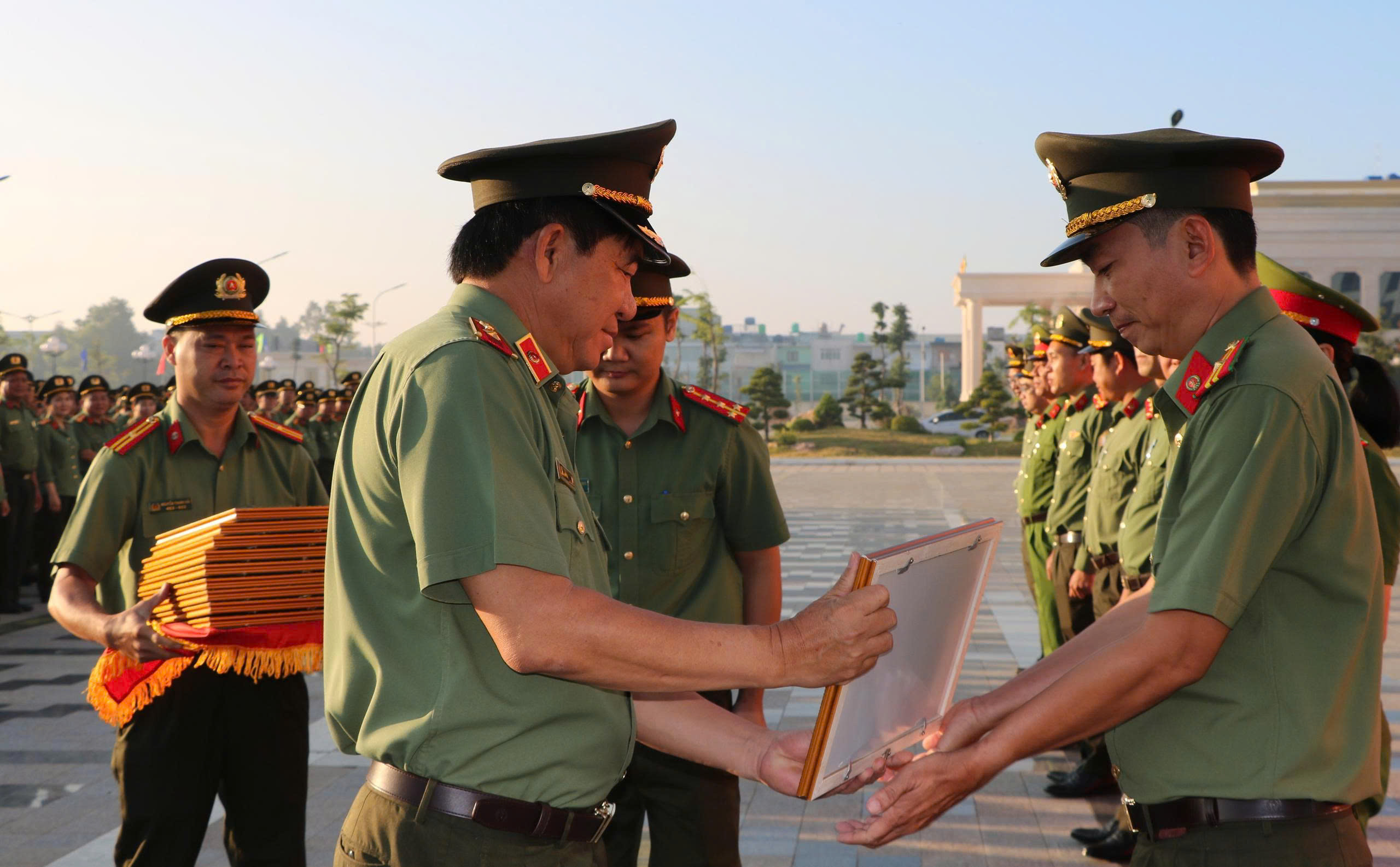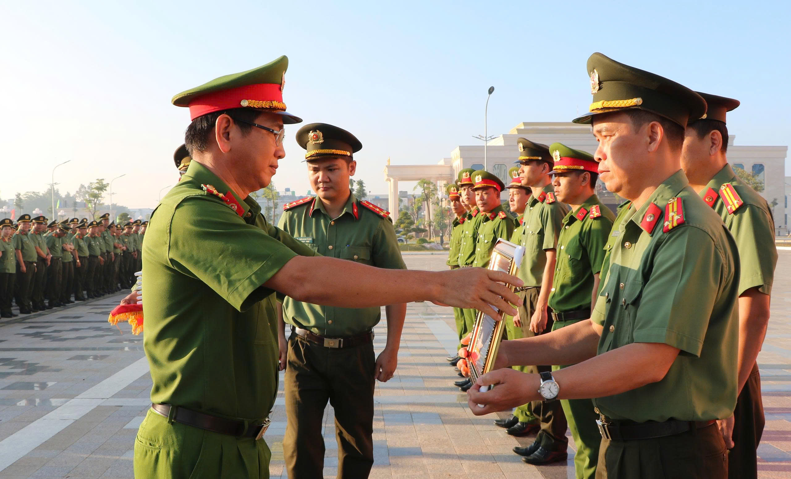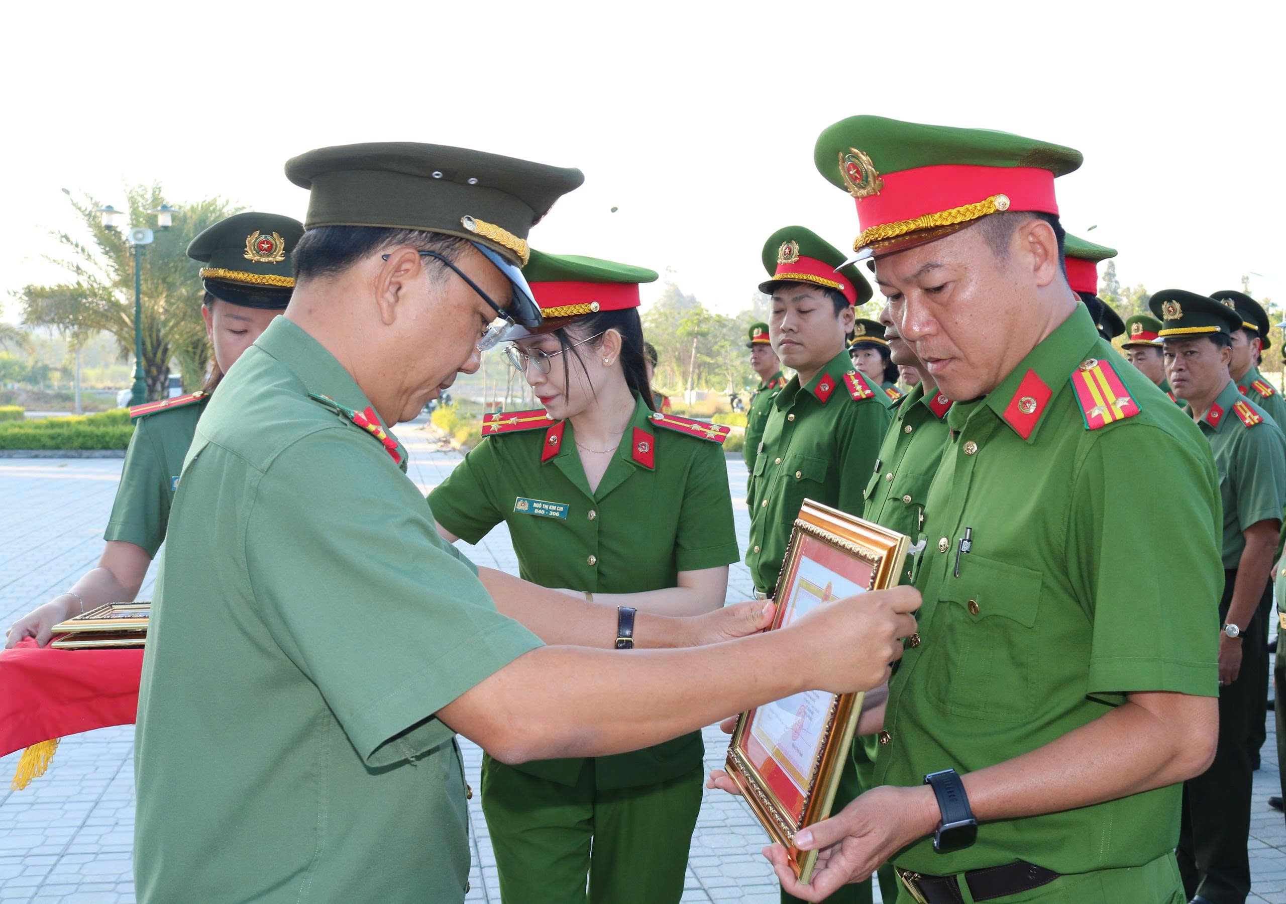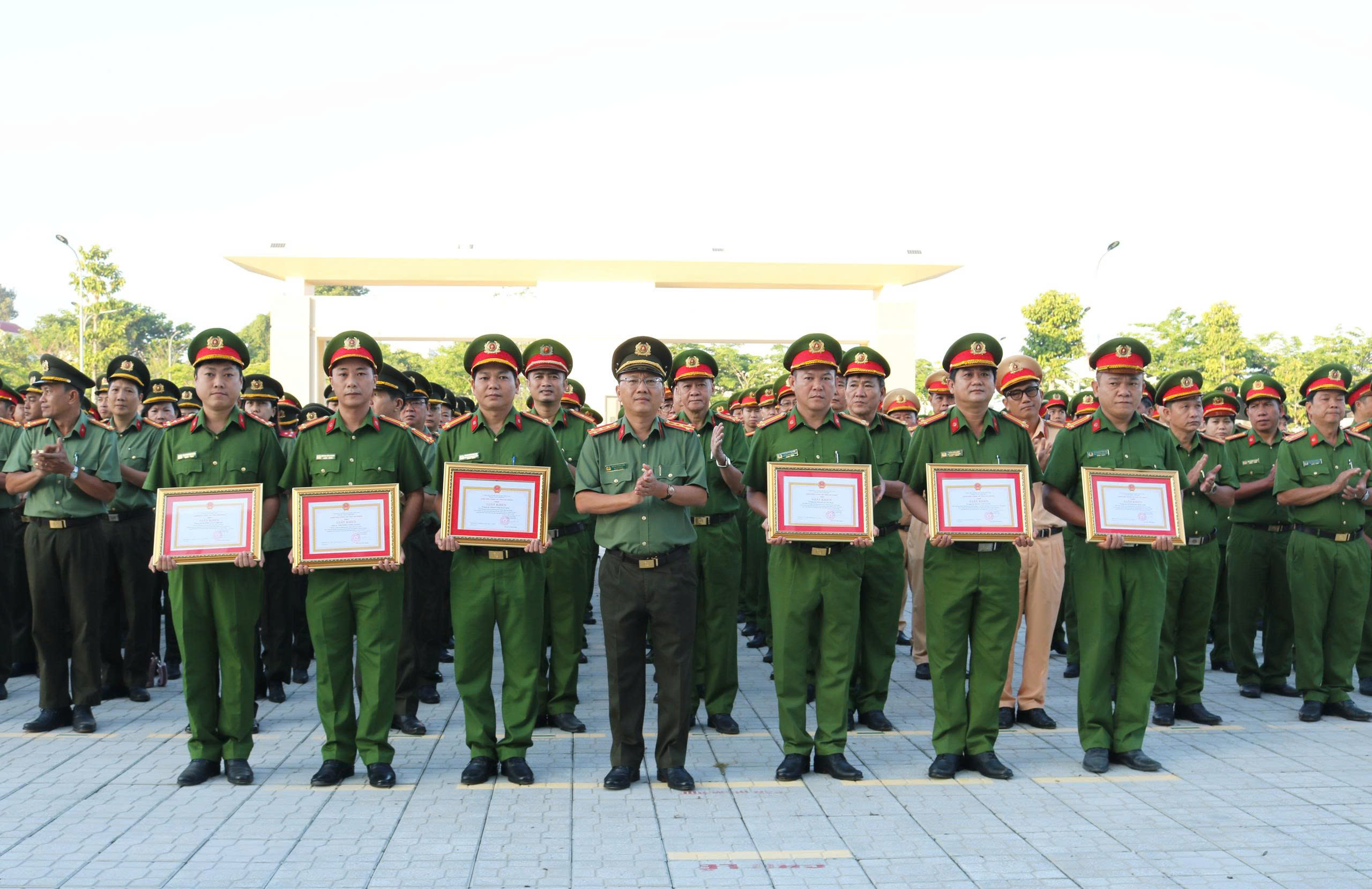 Đồng chí Thiếu tướng Nguyễn Văn Hận, Uỷ viên Ban thường vụ Tỉnh uỷ, Giám đốc Công an tỉnh trao Bằng khen cho các tập thể, cá nhân có thành tích xuất sắc.