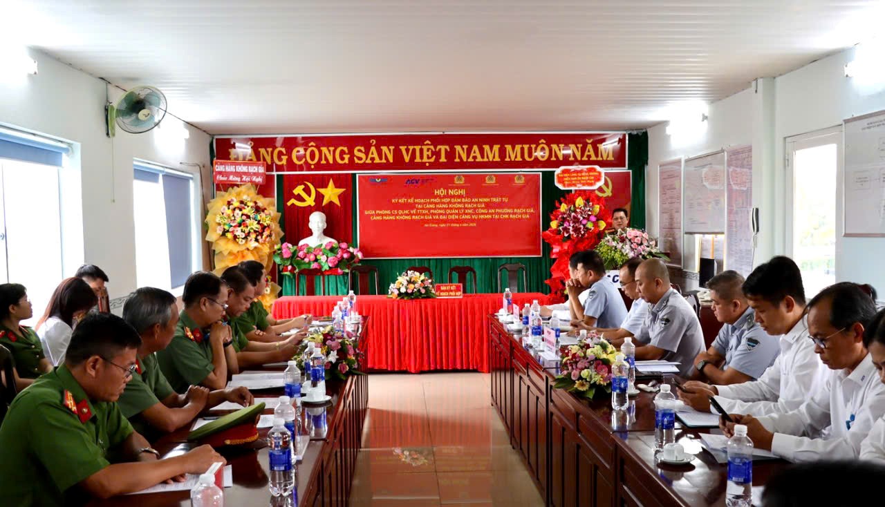 Phát biểu tại hội nghị, đồng chí Đại tá Diệp Văn Thế, Phó Giám đốc Công an tỉnh nhấn mạnh: Ký kết kế hoạch phối hợp có ý nghĩa hết sức quan trọng, thể hiện rõ quyết tâm của các đơn vị trong công tác đảm bảo an ninh trật tự tại Cảng hàng không Rạch Giá. Yêu cầu các đơn vị thường xuyên duy trì mối quan hệ phối hợp trao đổi thông tin, tình hình, phối hợp với lực lượng Công an trong công tác đấu tranh, xử lý với các loại tội phạm hình sự, kinh tế, ma túy... và các hoạt động gây ảnh hưởng đến an ninh hàng không; trao đổi thông tin, tình hình về an ninh trật tự trên địa bàn. Từ đó, có biện pháp phù hợp trong việc tăng cường phối hợp bảo đảm an ninh trật tự, an ninh hàng không…