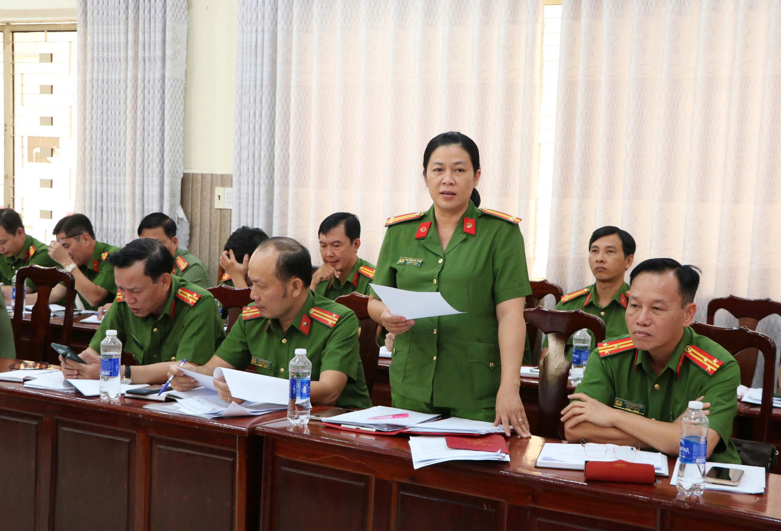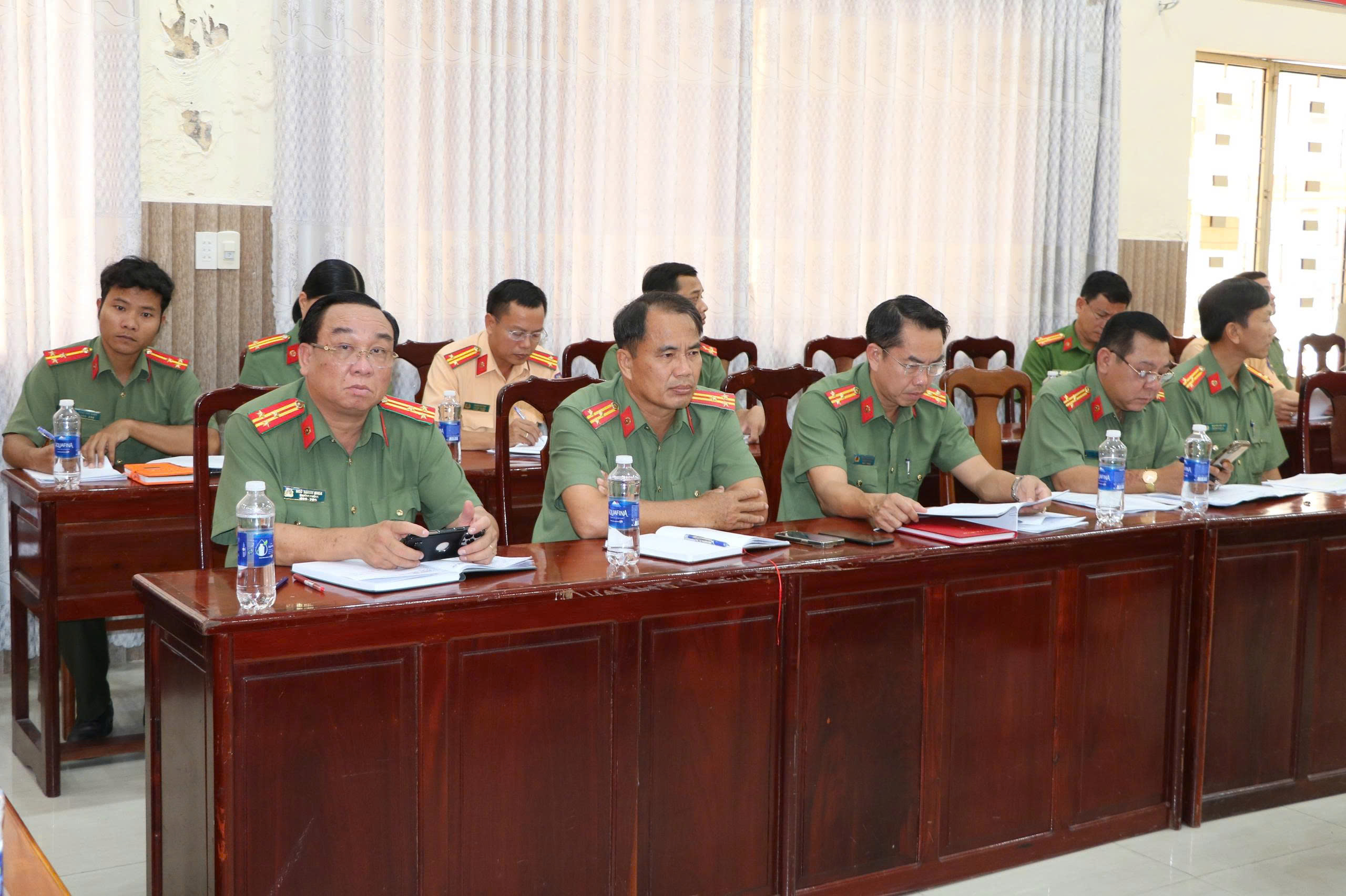 Đồng chí Đại tá Diệp Văn Thế, Phó Giám đốc Công an tỉnh dự và phát biểu chỉ đạo tại cuộc họp