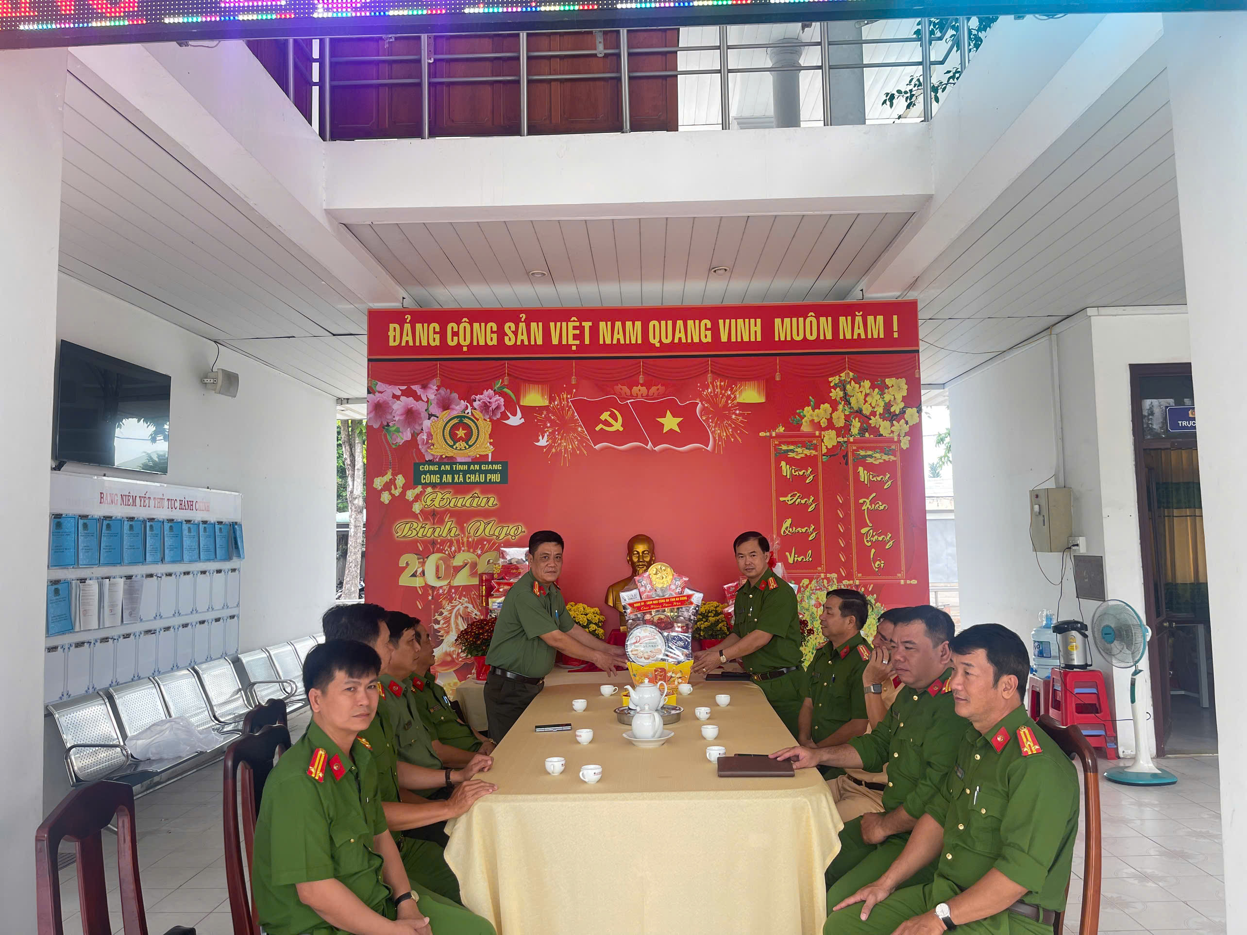 Nhân dịp Mừng Đảng, mừng Xuân Bính Ngọ 2026, đoàn công tác của Công an tỉnh do đồng chí Thượng tá Ngô Thanh Phong, Trưởng phòng An ninh điều tra Công an tỉnh – Tổ trưởng Tổ theo dõi hướng dẫn toàn diện các mặt công tác Công an xã, phụ trách cụm địa bàn (xã Châu Phú, Bình Mỹ, Vĩnh Thạnh Trung, Mỹ Đức và Thạnh Mỹ Tây) làm trưởng đoàn đến Công an xã Châu Phú thăm, tặng quà chúc mừng năm mới Chỉ huy và cán bộ chiến sĩ Công an 5 xã.