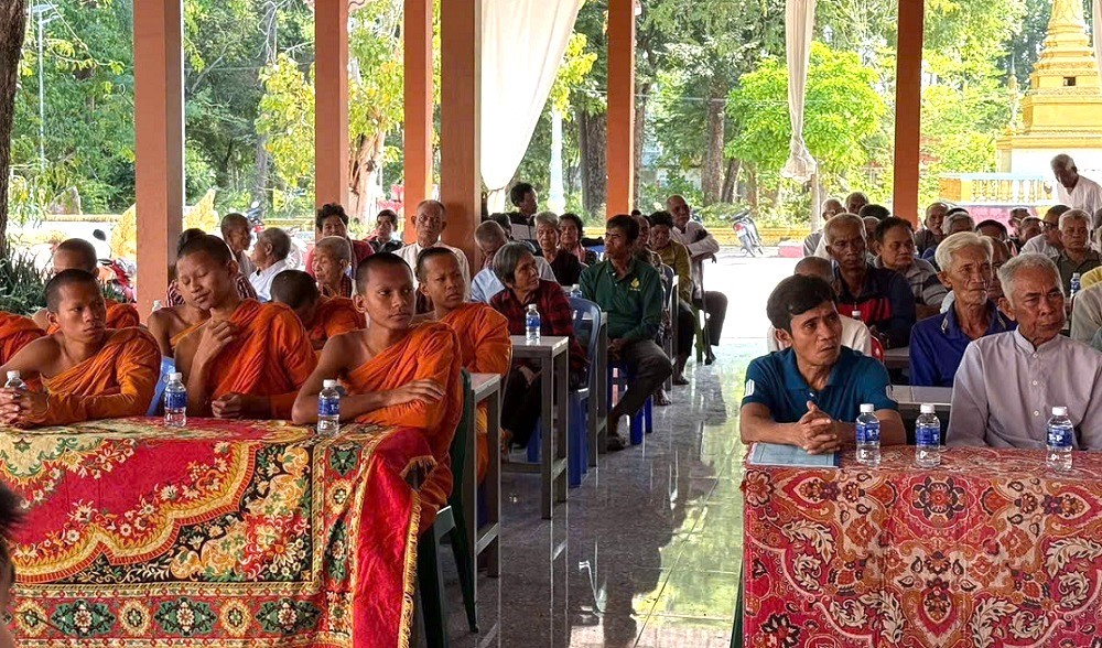 Công an xã An Cư tuyên truyền, phổ biến pháp luật đến các sư sãi và người dân trên địa bàn xã