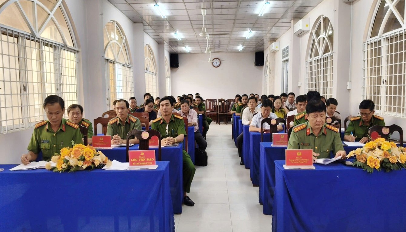 Tham dự có lãnh đạo phòng Hồ sơ nghiệp vụ phụ trách địa bàn, Chỉ huy, các cán bộ, chiến sĩ Công an xã, Ban Chỉ huy Quân sự, lực lượng an ninh trật tự cơ sở tham gia bảo vệ ANTT và Tổ trưởng ở 17 điểm bỏ phiếu trên địa bàn xã.