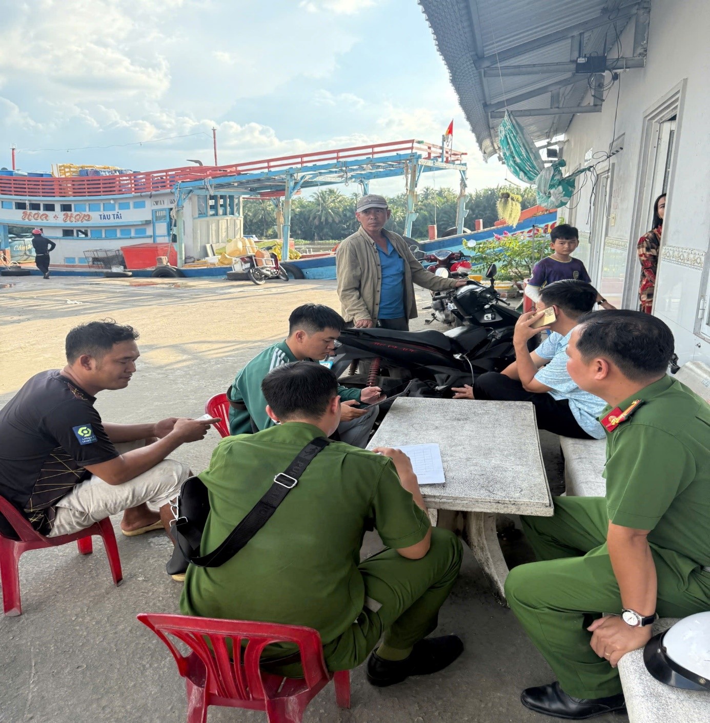 Lực lượng Công an xã đã trực tiếp gặp gỡ, phát tờ rơi và tuyên truyền về vai trò, tầm quan trọng của công tác chống khai thác IUU, nghĩa vụ, quyền lợi của ngư dân trong quá trình khai thác, đánh bắt hải sản; tuyên truyền để chủ tàu, ngư dân hiểu rõ, nắm chắc và cam kết tuân thủ chính sách, pháp luật và nghĩa vụ quốc tế trong bảo vệ môi trường biển trong nước và quốc tế, không vi phạm vùng biển nước ngoài trong khai thác hải sản; duy trì thiết bị giám sát hành trình tàu cá 24/24 giờ từ lúc rời cảng đến khi cập cảng, không tháo thiết bị giám sát hành trình để gửi sang tàu cá khác; tố giác các hành vi khai thác hải sản bất hợp pháp; kịp thời phản ánh những nỗ lực, kết quả chống khai thác IUU trên địa bàn…