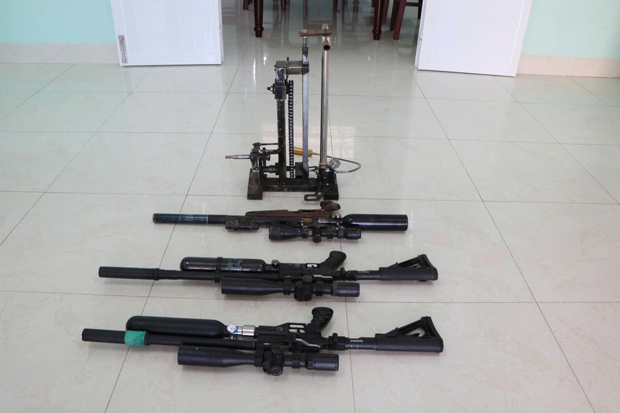 Một số khẩu súng hơi lực lượng Công an xã Bình Giang vận động người dân giao nộp