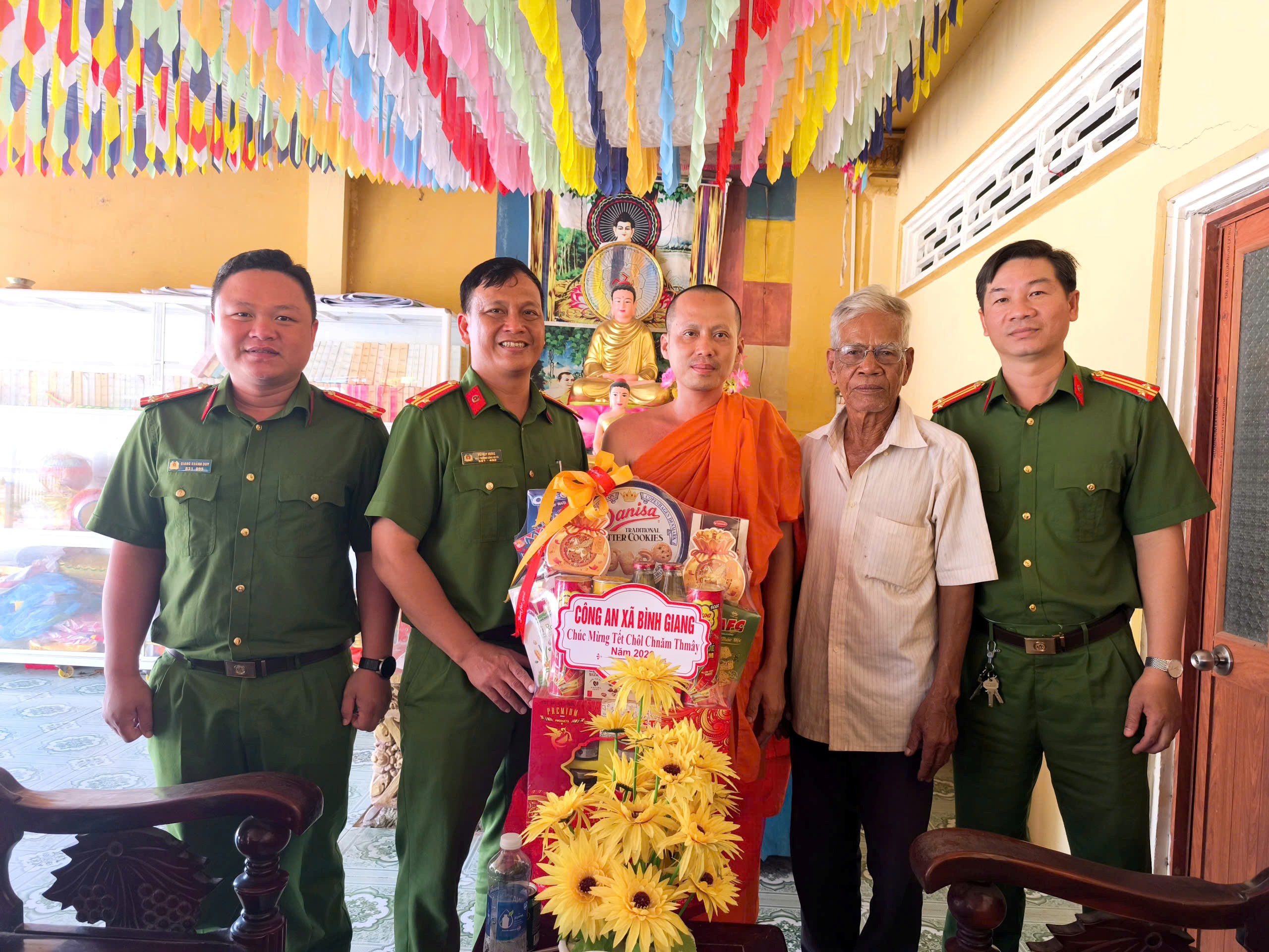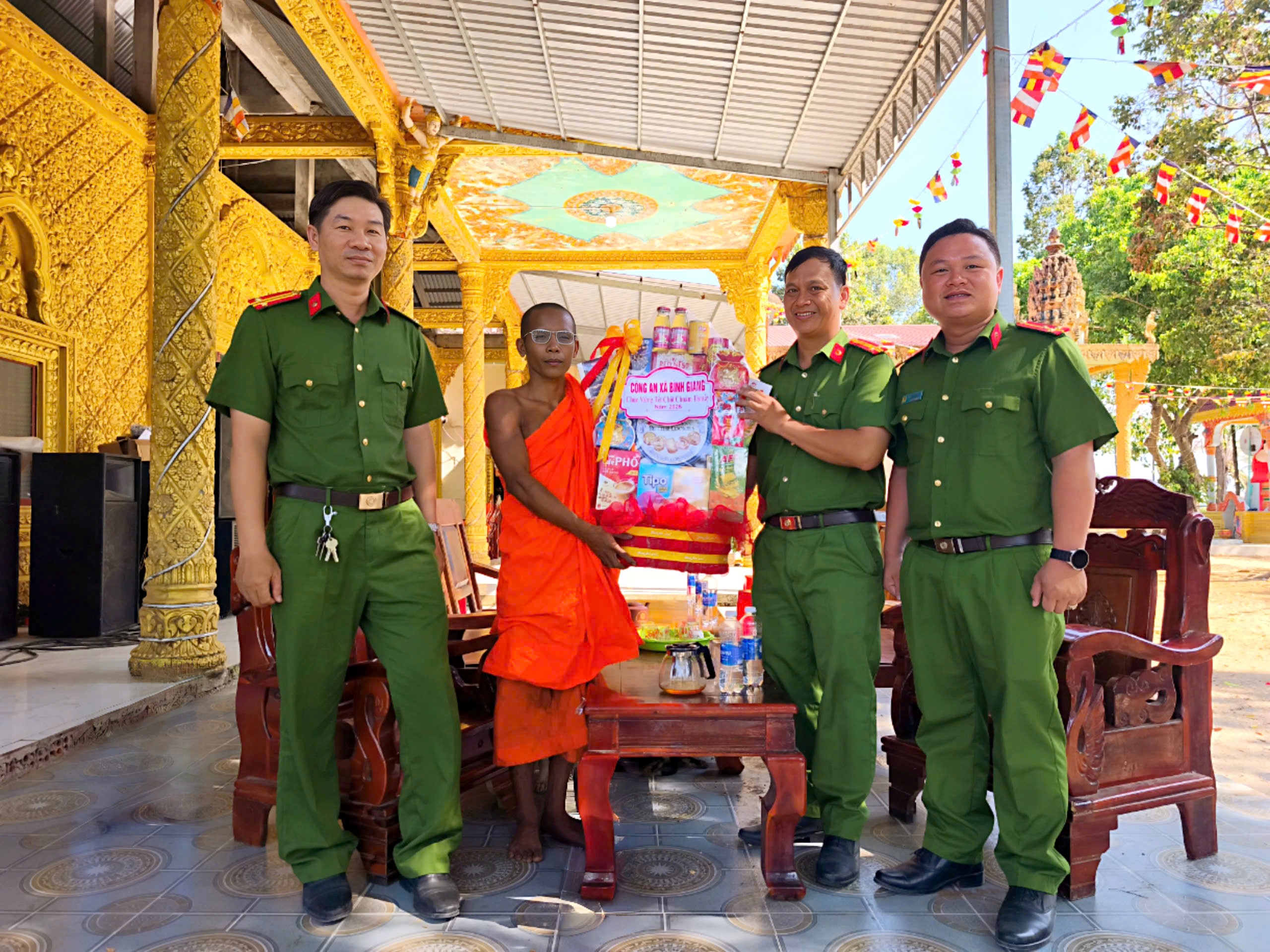 Nhân dịp Tết cổ truyền Chôl Chnăm Thmây 2026, ngày 10/04/2026, Công an xã Bình Giang đã đến thăm hỏi, tặng quà, chúc Tết các chùa Khmer trên địa bàn.