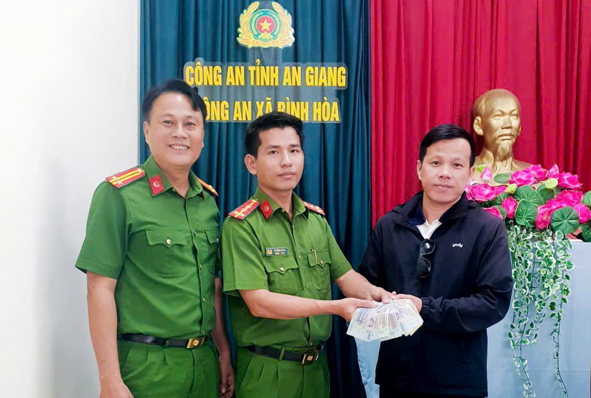 Sáng 11/12/2025, Công an xã Bình Hoà, tỉnh An Giang cho biết, đơn vị vừa xác minh tìm chủ sở hữu và tổ chức trao trả tài sản do ông Đỗ Văn Đang (sinh năm 1965, cư trú ấp Bình Phú I, xã Bình Hoà, tỉnh An Giang) trong lúc đi bán vé số nhặt được giao nộp Công an xã.