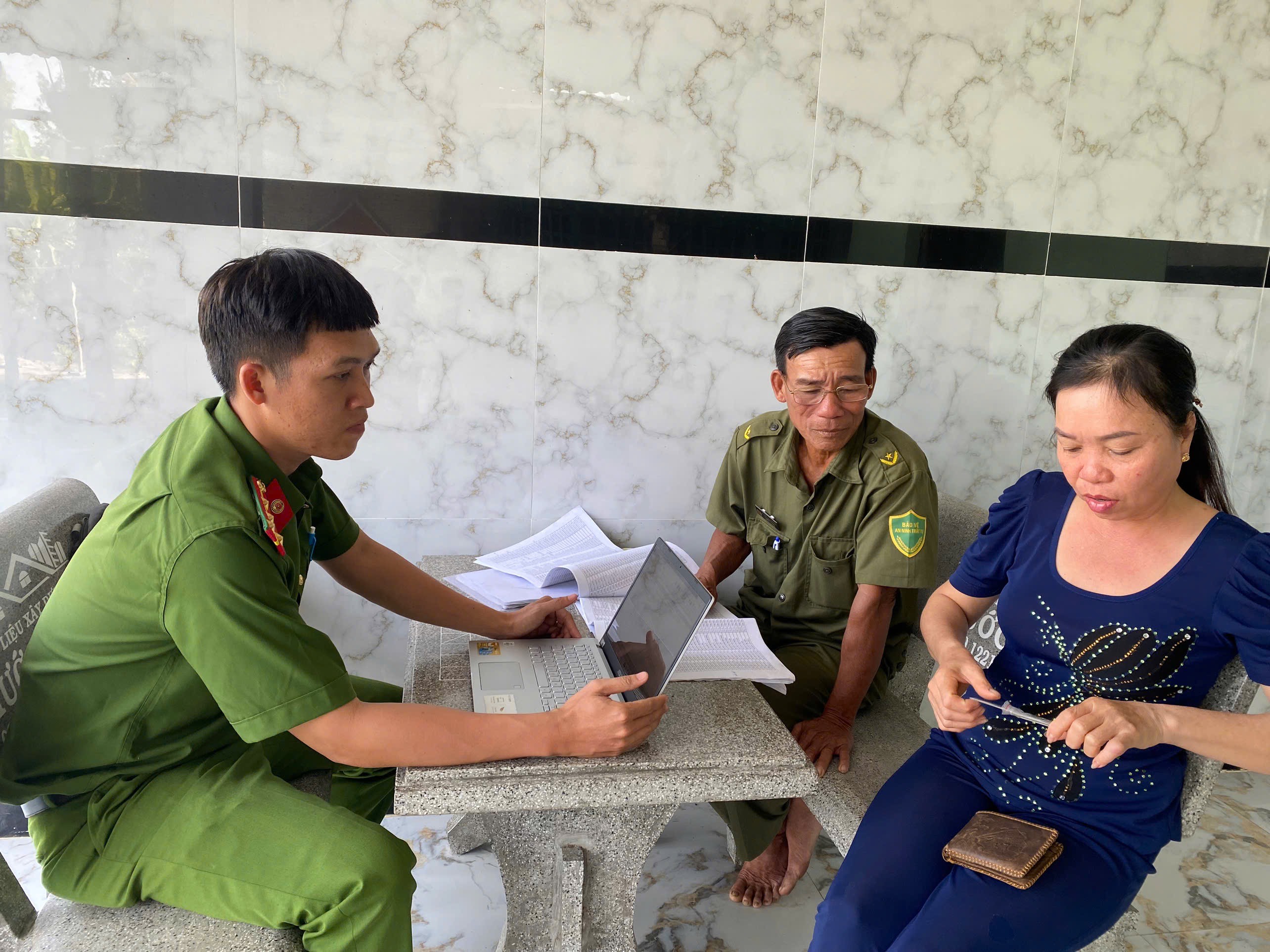 Cán bộ, chiến sĩ Công an xã phối hợp với các Tổ an ninh trật tự 05 ấp trực tiếp xuống từng khu dân cư để đối chiếu thông tin phương tiện, kịp thời phát hiện các trường hợp sai lệch, thiếu dữ liệu hoặc phương tiện không còn tồn tại thực tế. Mặc dù lực lượng mỏng, địa bàn rộng và số lượng xe lớn, cán bộ vẫn nỗ lực làm việc cả ngoài giờ hành chính để bảo đảm tiến độ chung của toàn tỉnh.