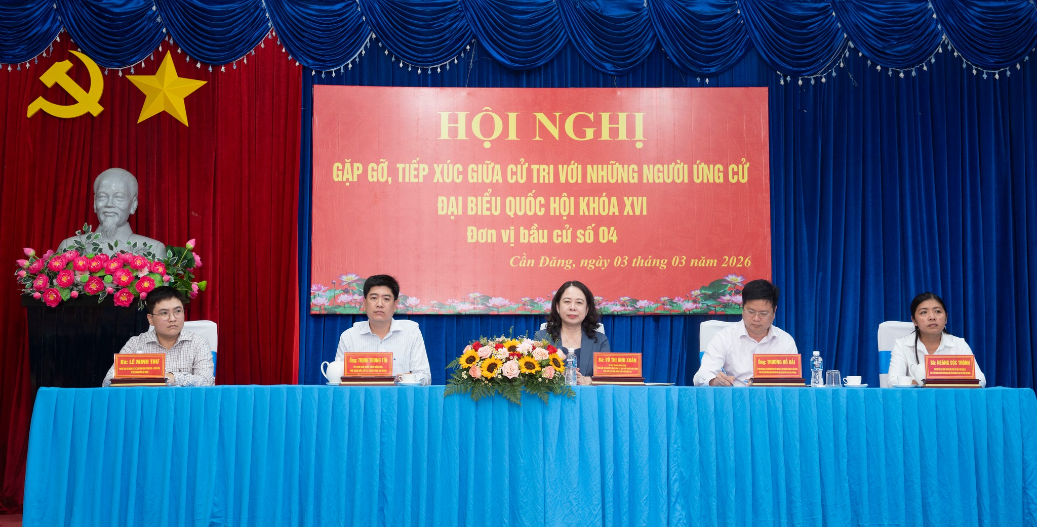 Chiều ngày 03/3/2026, Bí thư Trung ương Đảng, Phó Chủ tịch Nước Cộng Hòa Xã Hội Chủ Nghĩa Việt Nam, Phó Chủ tịch Hội đồng bầu cử Quốc gia – Võ Thị Ánh Xuân cùng các ứng cử viên Đại biểu Quốc hội khóa XVI thuộc đơn vị bầu cử số 04 đã có buổi gặp gỡ, tiếp xúc cử tri các xã Cần Đăng, Vĩnh Hanh, Vĩnh An. Hội nghị được tổ chức trực tiếp tại Hội trường UBND xã Cần Đăng, đồng thời trực tuyến với điểm cầu xã Vĩnh An.