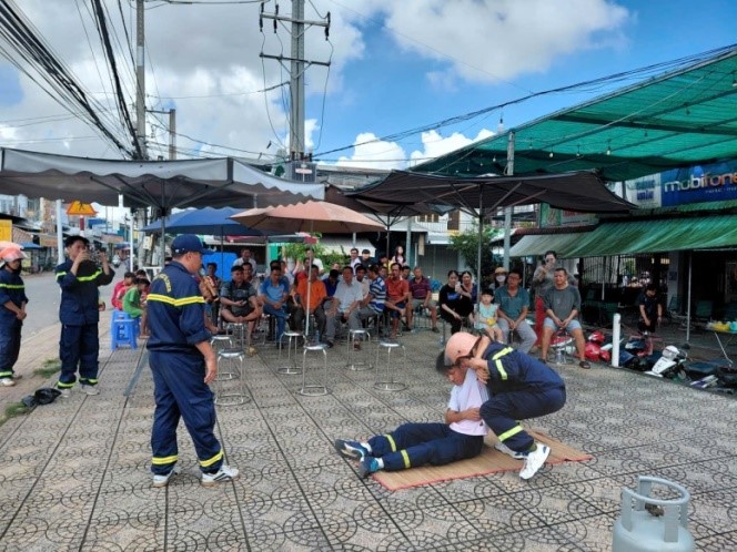 Hoạt động nhằm nâng cao nhận thức, kiến thức pháp luật và kỹ năng phòng cháy, chữa cháy cho các hộ tiểu thương, cơ sở kinh doanh, người dân trên địa bàn xã; giúp mọi người hiểu rõ nguy cơ dẫn đến cháy, nổ xảy ra, biết sử dụng phương tiện chữa cháy ban đầu, kỹ năng xử lý tình huống và thoát nạn an toàn khi có sự cố xảy ra.