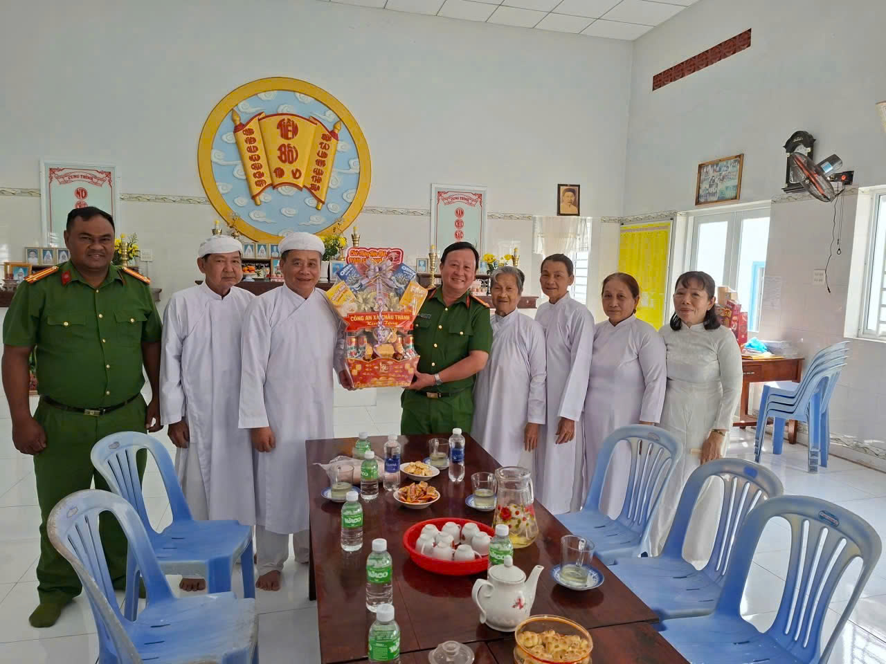 Tại nơi đến thăm, Trung tá Lê Minh Tâm - Phó Trưởng Công an xã đã ân cần thăm hỏi sức khỏe và gửi lời chúc mừng năm mới đến chức sắc, chức việc và tín đồ trong các tôn giáo. Đồng thời, ghi nhận sự phối hợp tích cực của các chức sắc, chức việc trong việc tuyên truyền, vận động tín đồ chấp hành chủ trương của Đảng, chính sách, pháp luật của Nhà nước; tích cực tham gia phong trào “Toàn dân bảo vệ an ninh Tổ quốc”, góp phần giữ vững an ninh, trật tự phục vụ phát triển kinh tế - xã hội của địa phương.