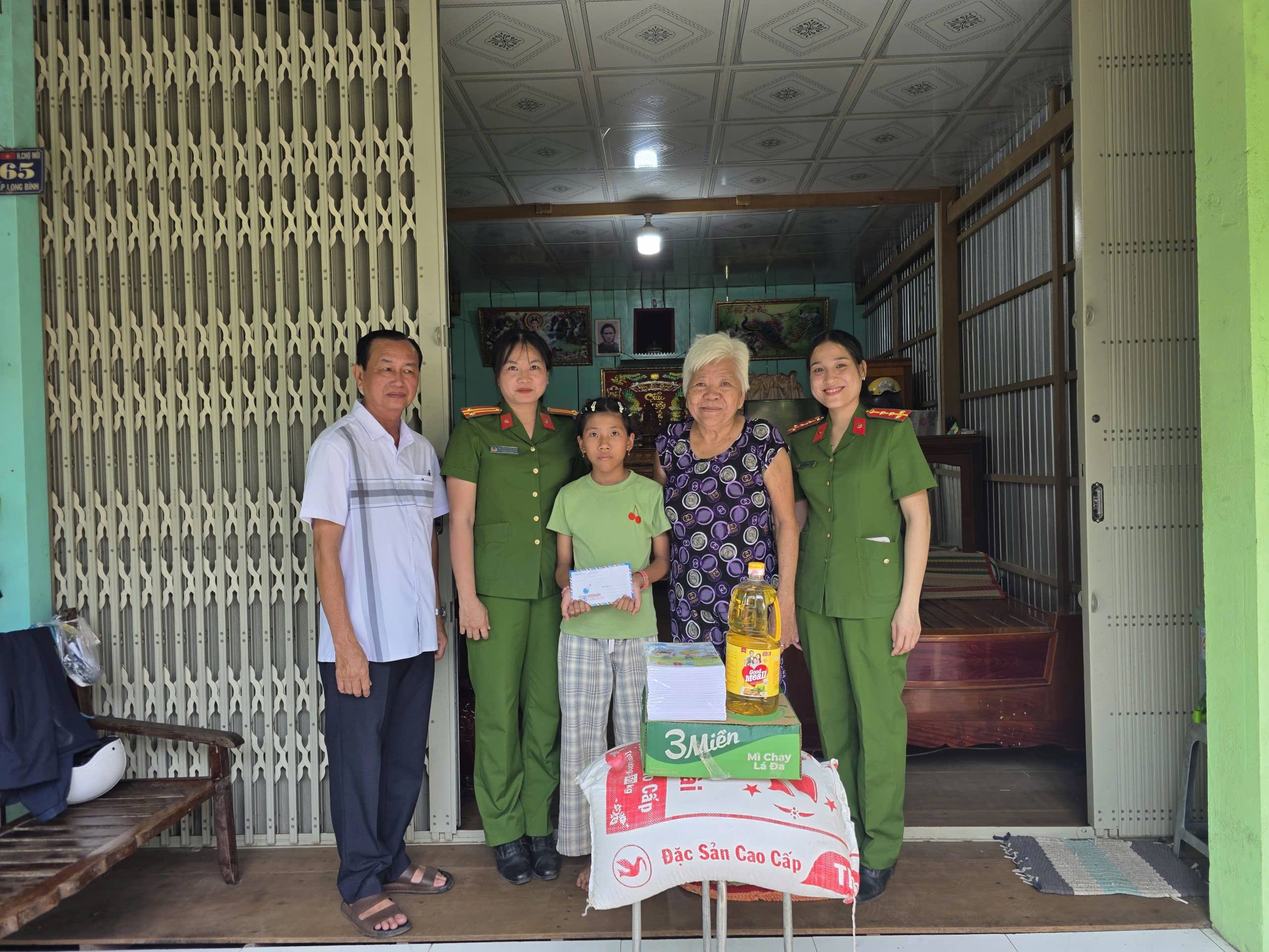 Trung tá Nguyễn Thị Kim Ngọc – Phó trưởng Công an xã Chợ Mới trực tiếp đến thăm hỏi, động viên các em và gia đình, đồng thời trao các tặng phần quà (mỗi phần trị giá 02 triệu đồng gồm: nhu yếu phẩm, dụng cụ học tập và hỗ trợ kinh phí sinh hoạt).