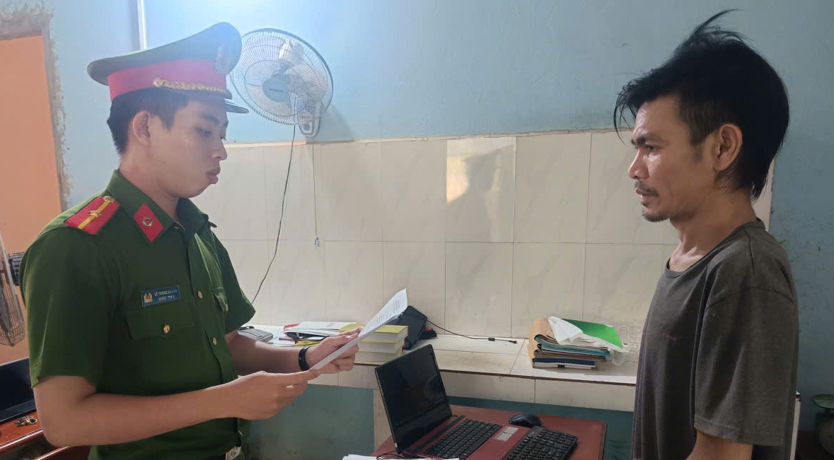 Công an xã Cù Lao Giêng tống đạt Lệnh bắt bị can Nguyễn Hữu Ngọc để tạm giam