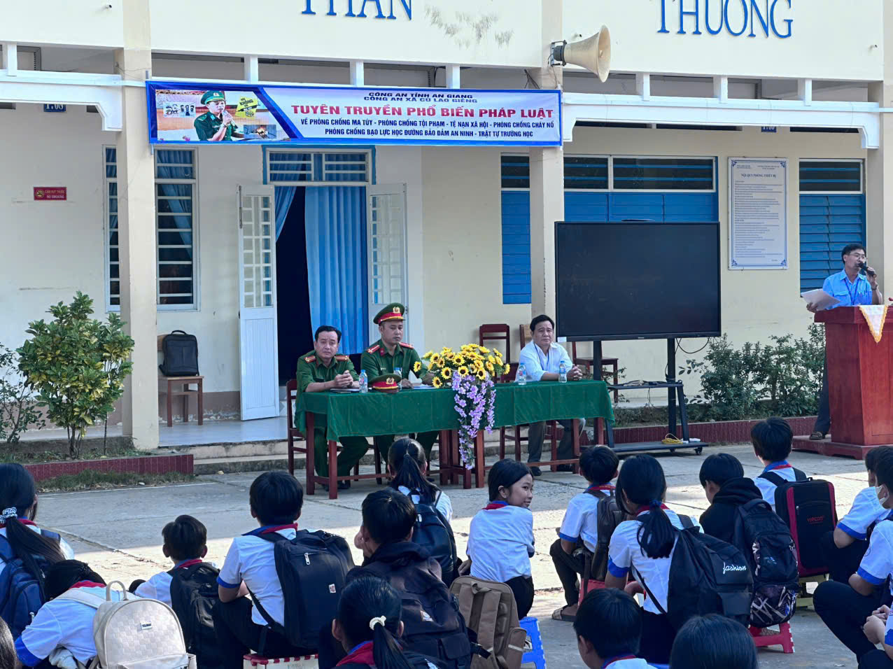 Nhằm nâng cao nhận thức, ý thức chấp hành pháp luật cho học sinh trong lứa tuổi học đường, ngày 02/02, Công an xã Cù Lao Giêng đã tổ chức 02 buổi tuyên truyền pháp luật về trật tự an toàn giao thông; Luật Phòng, chống ma túy; Luật Phòng cháy, chữa cháy và phòng, chống bạo lực học đường tại Trường Trung học cơ sở Nguyễn Thanh Sơn và Trường Trung học cơ sở Trương Công Thận. Các buổi tuyên truyền đã thu hút hơn 2.000 lượt cán bộ, giáo viên và học sinh tham gia.