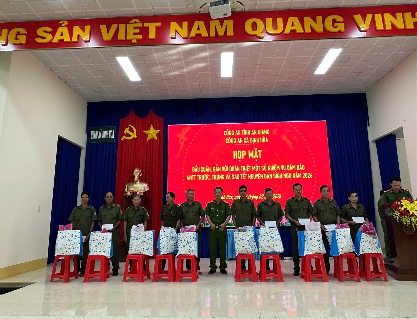 Dịp này, Công an xã Định Hòa đã trao tặng 117 phần quà với tổng giá trị khoảng 58.5000 đồng đến các đồng chí Lực lượng bảo vệ an ninh, trật tự ở cơ sở, chúc các đồng chí và gia đình có một mùa Xuân mới sức khỏe, hạnh phúc.