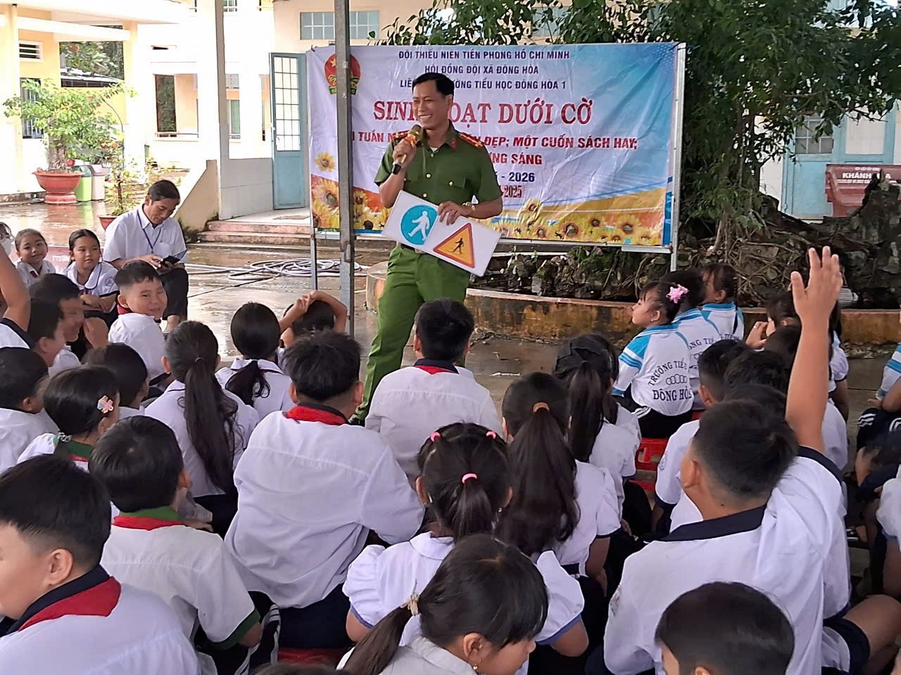 Nhằm góp phần phổ biến pháp luật về giao thông đối với các em học sinh trong trường học. Vừa qua, Công an xã Đông Hòa đã phối hợp với trường Trung học cơ sở (THCS) và trường Tiểu học trên địa bàn xã tổ chức tuyên truyền, phổ biến, giáo dục kiến thức pháp luật về trật tự, an toàn giao thông đường bộ và các tác hại của ma túy, thuốc lá điện tử cho giáo viên và các em học sinh của nhà trường. Qua đó đã tổ chức 06 cuộc tuyên truyền với 1.960 cán bộ, công chức, viên chức, giáo viên và các em học sinh tham gia.