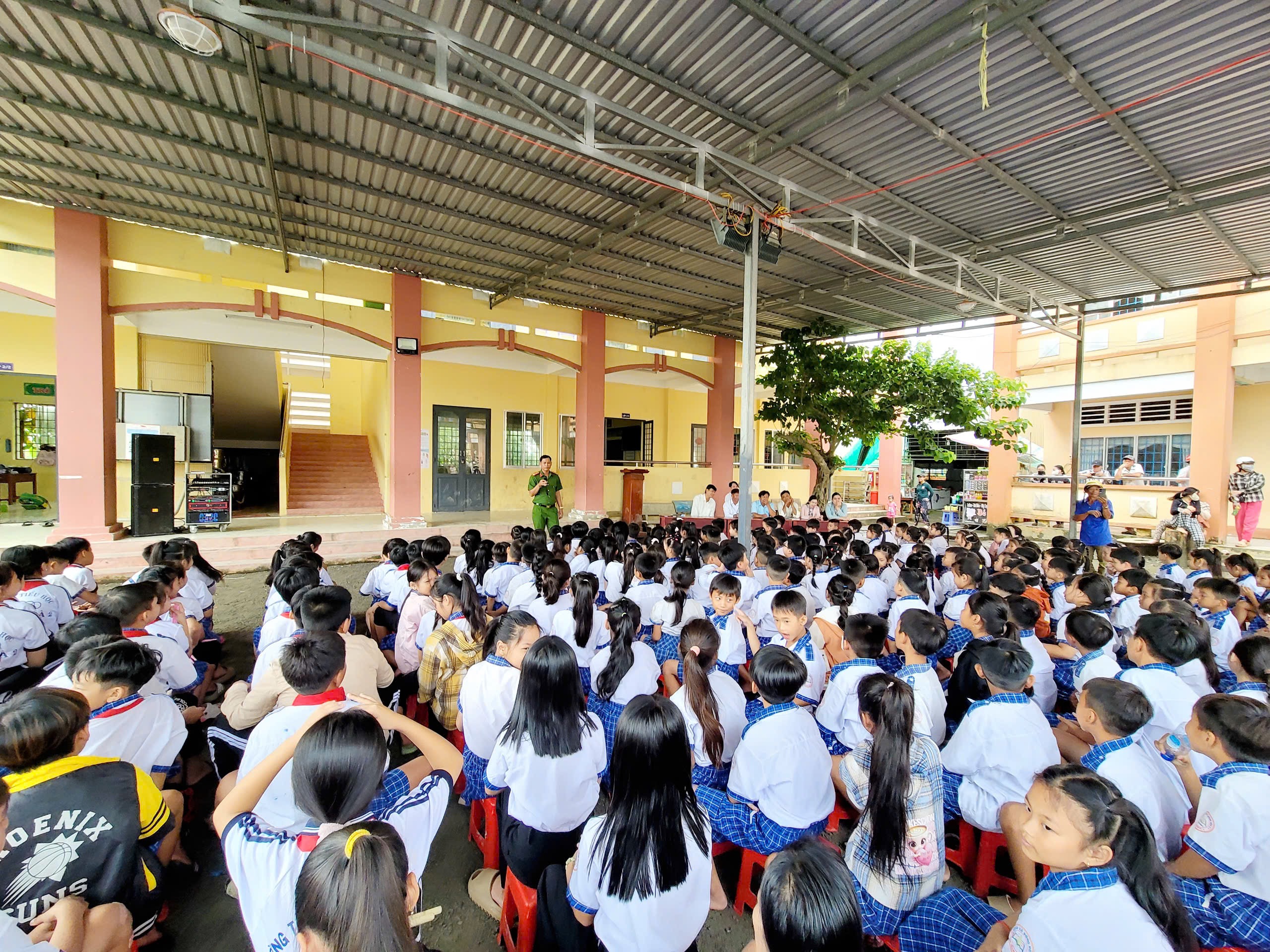 Tại các buổi tuyên truyền, cán bộ Công an xã đã thông tin đến toàn thể giáo viên và các em học sinh của trường về tình trạng vi phạm Luật Giao thông đường bộ của một bộ phận thanh thiếu niên hiện nay, nhất là việc tham gia giao thông không đội mũ bảo hiểm khi ngồi trên mô tô, xe gắn máy, xe đạp điện; tình trạng phóng nhanh, vượt ẩu, lạng lách, đánh võng, đua xe trái phép và các tác hại của ma túy, thuốc lá điện tử… Đồng thời, phổ biến những nội dung cơ bản về Luật Giao thông đường bộ như các quy tắc tham gia giao thông, hình thức và mức xử phạt đối với nhóm các hành vi vi phạm phổ biến.