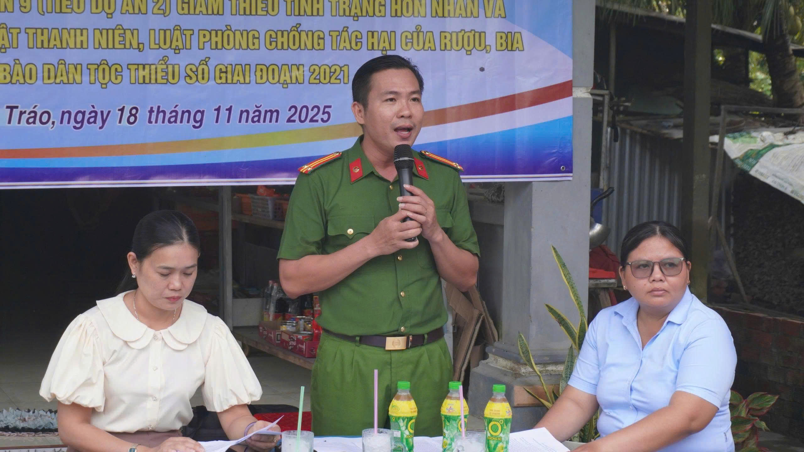 Thực hiện Chương trình mục tiêu Quốc gia phát triển kinh tế – xã hội vùng đồng bào dân tộc thiểu số giai đoạn 2021–2030, thời gian qua Công an xã Giồng Riềng đã chủ động phối hợp với Xã đoàn triển khai nhiều hoạt động tuyên truyền pháp luật đến người dân tại các ấp trên địa bàn.