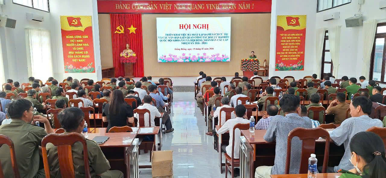 Ngày 19/01, Công an xã Giồng Riềng đã tham mưu Ủy ban nhân dân xã tổ chức hội nghị triển khai công tác rà soát, lập danh sách cử tri và quán triệt các văn bản liên quan đến công tác bầu cử Đại biểu Quốc hội khóa XVI và Đại biểu Hội đồng nhân dân các cấp nhiệm kỳ 2026–2031.
