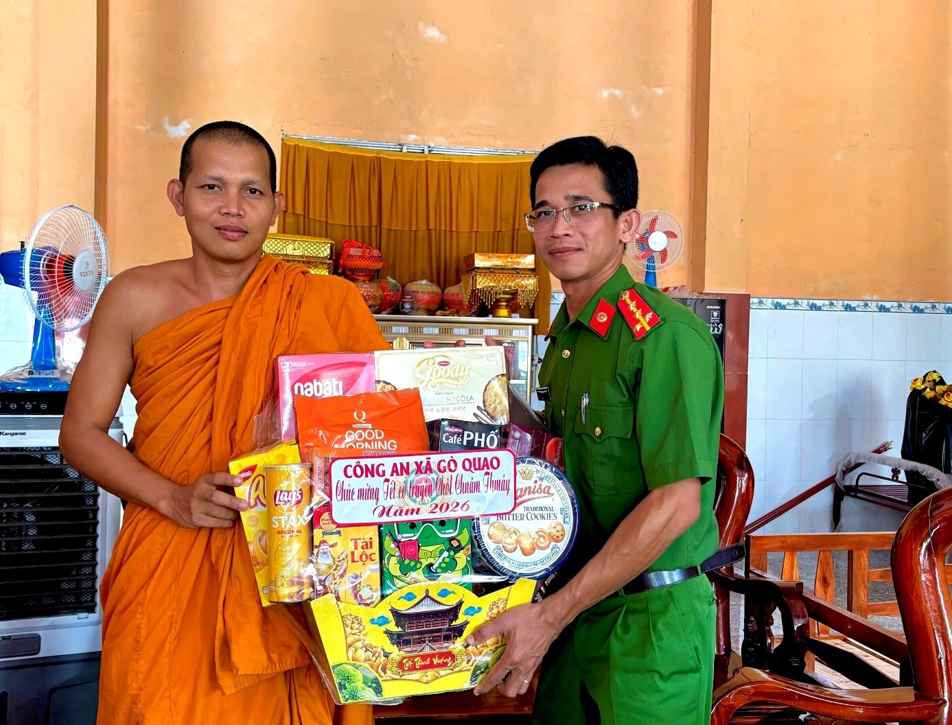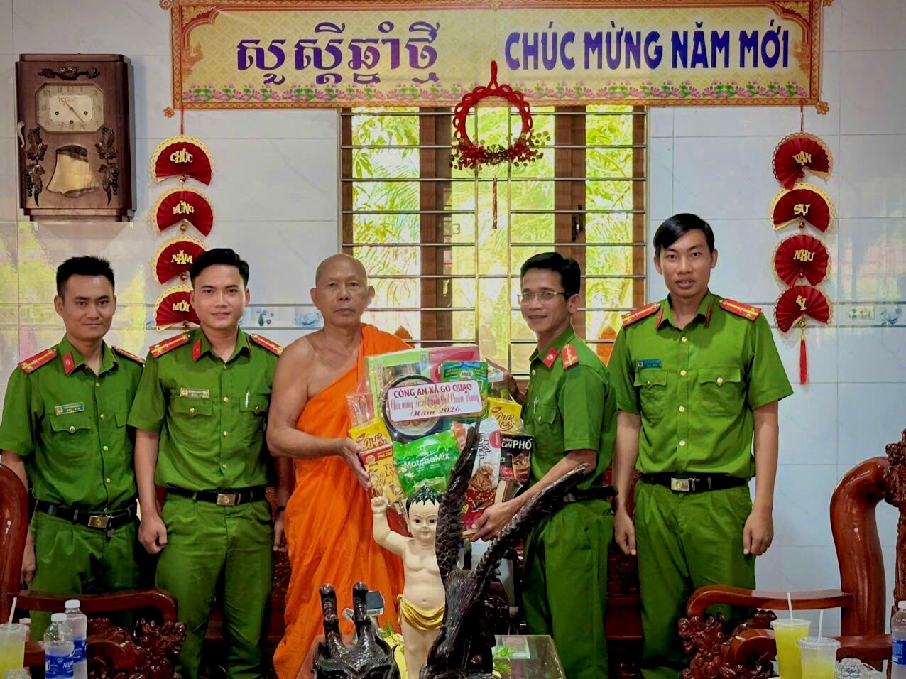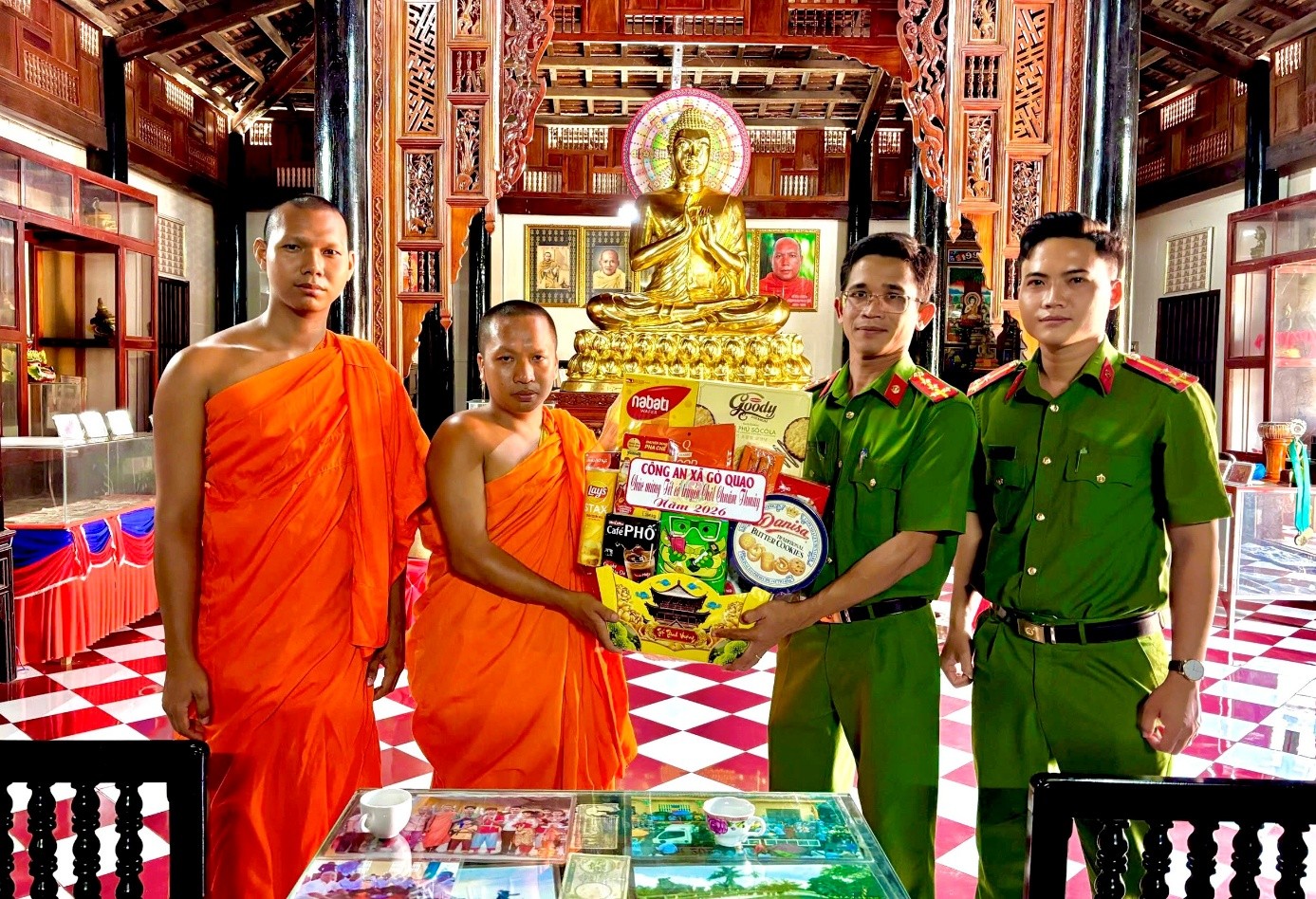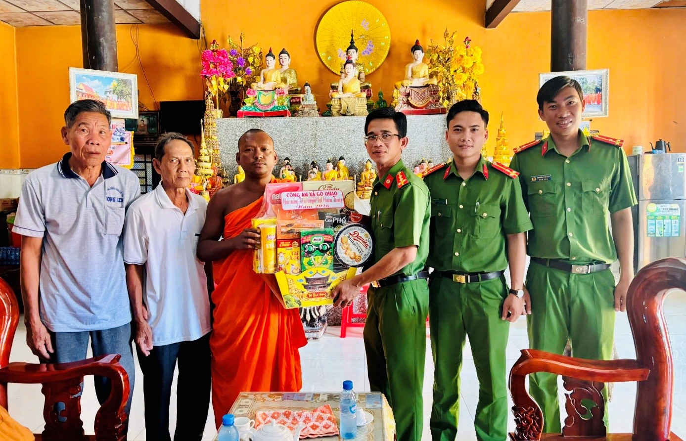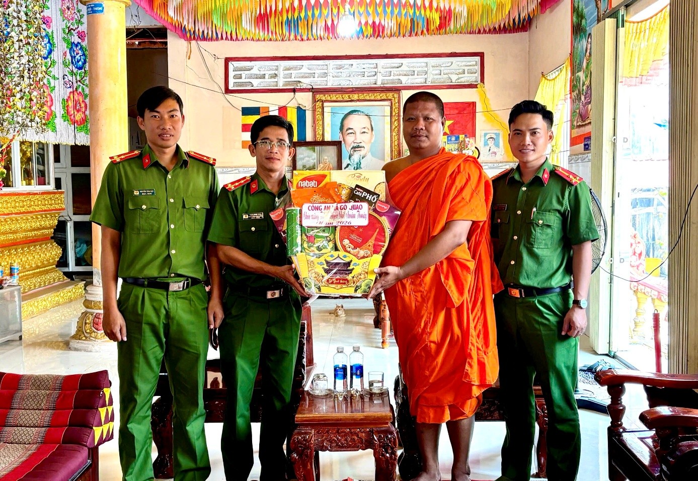 Công an xã Gò Quao thăm, tặng quà các chùa Phật giáo Nam tông Khmer nhân dịp Tết cổ truyền Chôl Chnăm Thmây năm 2026