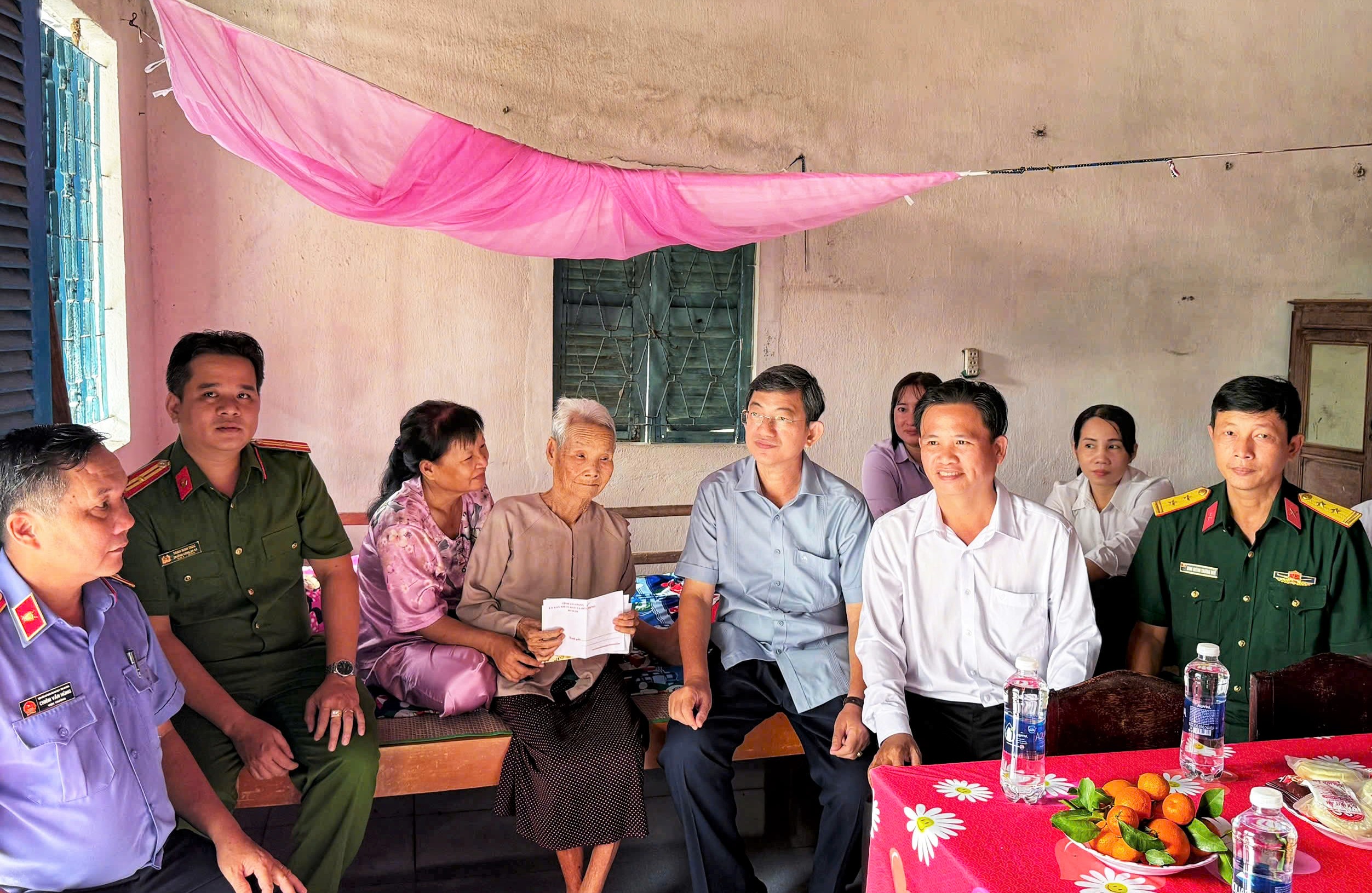 Công an xã Hòa Hưng thăm, chúc Tết Mẹ Việt Nam Anh hùng Nguyễn Thị Tư