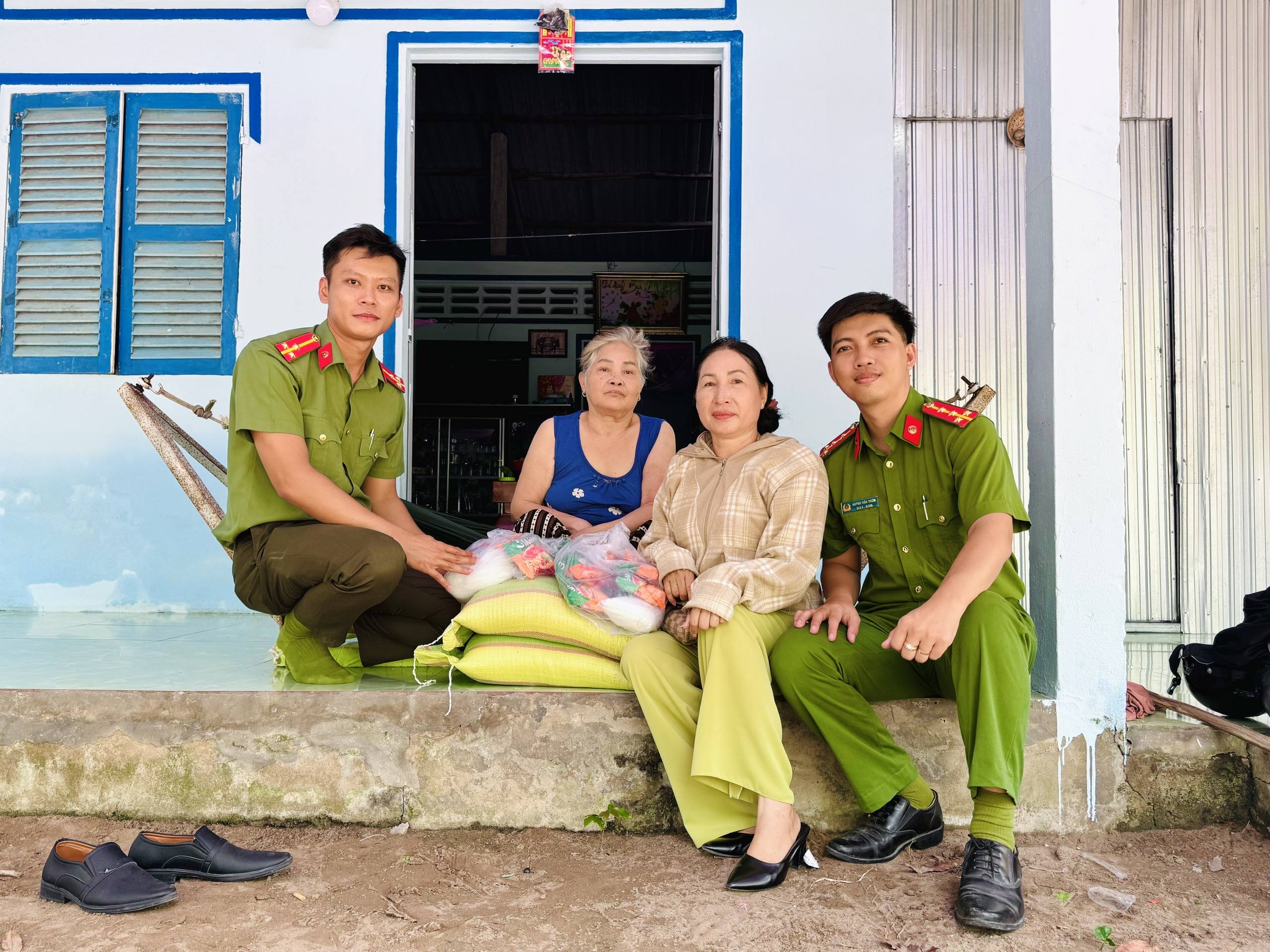 Đặc biệt, "Gần dân nhất" không còn là khẩu hiệu mà đã được cụ thể hóa bằng những hành động thiết thực. Không chỉ dừng lại ở việc cải cách thủ tục hành chính, "làm hết việc chứ không hết giờ" để hỗ trợ bà con Nhân dân, các chiến sĩ còn trực tiếp xuống tận nhà người già yếu, bệnh tật, khuyết tật đi lại khó khăn để làm thủ tục căn cước, định danh điện tử và giải quyết các giấy tờ cần thiết để đảm bảo quyền lợi chính đáng cho Nhân dân. Bên cạnh đó, việc tích cực vận động quà tặng, nhu yếu phẩm cho các hộ nghèo và gia đình có hoàn cảnh khó khăn đã cho thấy sự thấu hiểu và sẻ chia. Những phần quà được trao tận tay các hộ gia đình có hoàn cảnh đặc biệt khó khăn, hộ nghèo trên địa bàn xã tuy giá trị vật chất không quá lớn nhưng chứa đựng sự sẻ chia, ấm áp tình quân dân, giúp bà con vơi bớt phần nào gánh nặng cuộc sống.