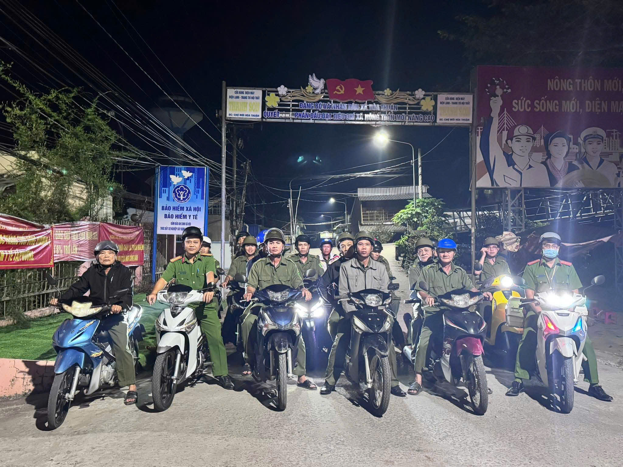 Công an xã Hoà Thuận tuần tra canh gác đảm bảo an ninh, trật tự địa bàn.