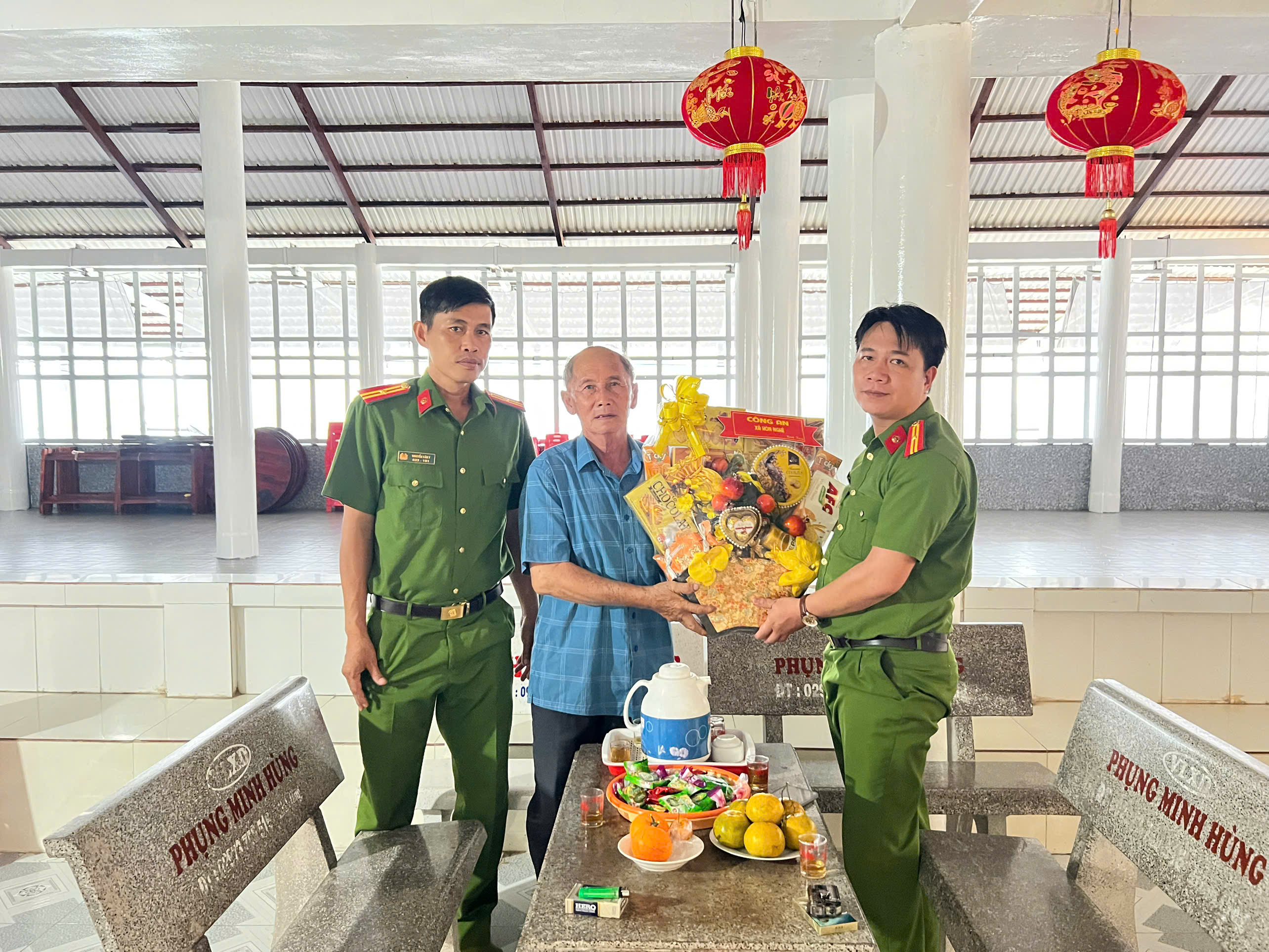 Nhân dịp Tết Nguyên đán Bính Ngọ 2026, Công an xã Hòn Nghệ thành lập đoàn đến thăm, chúc Tết và tặng quà các cơ sở tôn giáo, tín ngưỡng trên địa bàn.