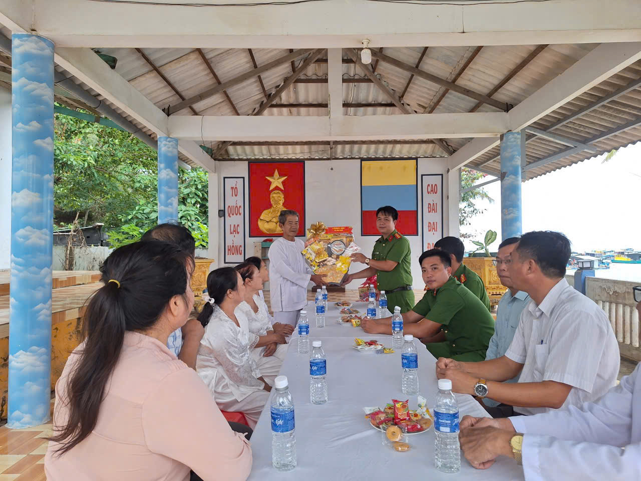 Công an xã tặng quà chúc Tết các cơ sở tôn giáo trên địa bàn