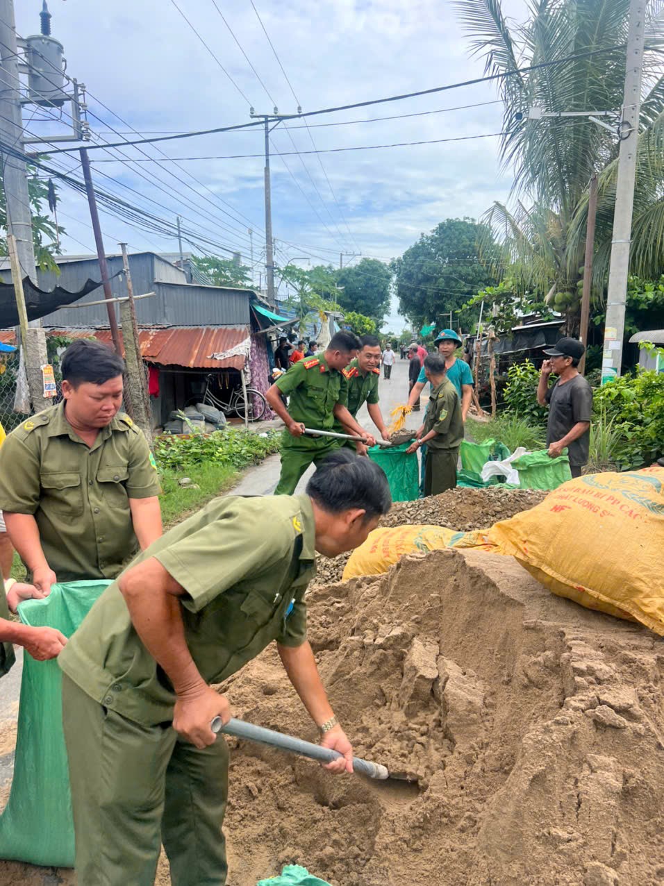 Trước tình hình trên, ngay khi nhận được chỉ đạo của Chủ tịch UBND xã, Công an xã Khánh Bình đã chủ động phối hợp cùng lực lượng An ninh trật tự cơ sở, Xã đội, cùng Ban nhân dân ấp triển khai biện pháp khắc phục. Hàng chục đồng chí được huy động, cùng phương tiện, vật liệu tại chỗ tiến hành san lấp, gia cố đoạn đường hư hỏng. Bên cạnh đó, vận động, hỗ trợ các hộ dân gần khu vực sạt lở tạm thời di dời tìm chỗ ở an toàn. Trong quá trình thực hiện, các lực lượng đã phân công nhiệm vụ cụ thể, vừa đảm bảo an toàn cho người tham gia, vừa duy trì giao thông tạm thời cho bà con.