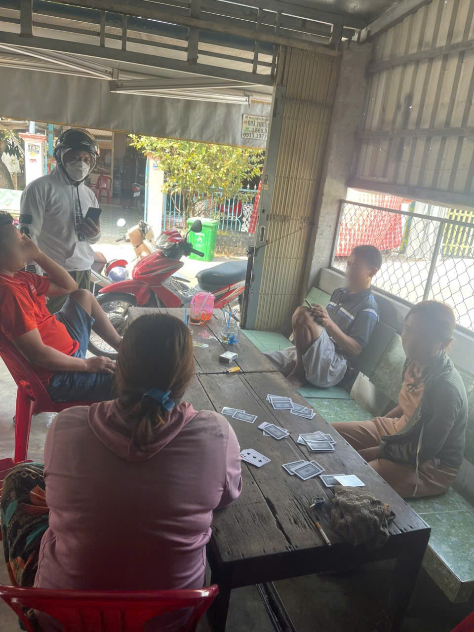 Trước đó, qua công tác nắm tình hình, Công an xã Mỹ Đức kiểm tra quán cà phê thuộc tổ 04, ấp Khánh Hòa, xã Mỹ Đức, tỉnh An Giang, phát hiện 04 đối tượng gồm: Huỳnh T.N (sinh năm 1985), Nguyễn Thị C.T (sinh năm 1981), Phạm T.D (sinh năm 1980) và Lê T.S (sinh năm 1975), cùng cư trú tại ấp Khánh Hòa, xã Mỹ Đức, đang thực hiện hành vi đánh bạc (đánh bài) ăn thua bằng tiền.