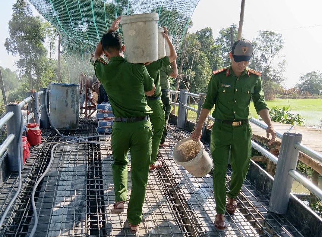 Công an xã Ngọc Chúc chung tay xây dựng cầu giao thông nông thôn, hoàn thiện tuyến dân sinh phục vụ người dân