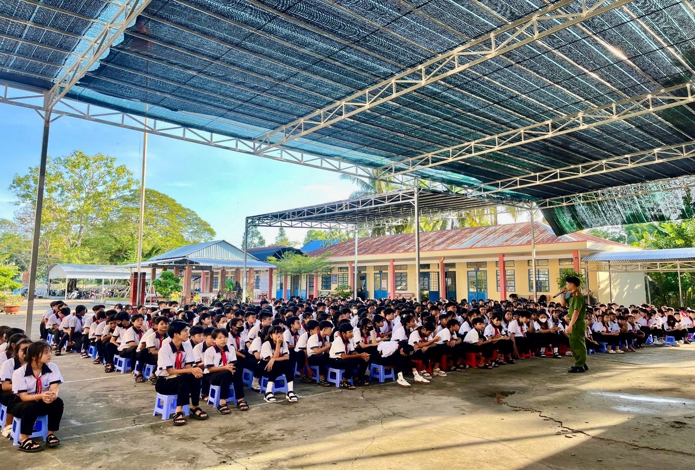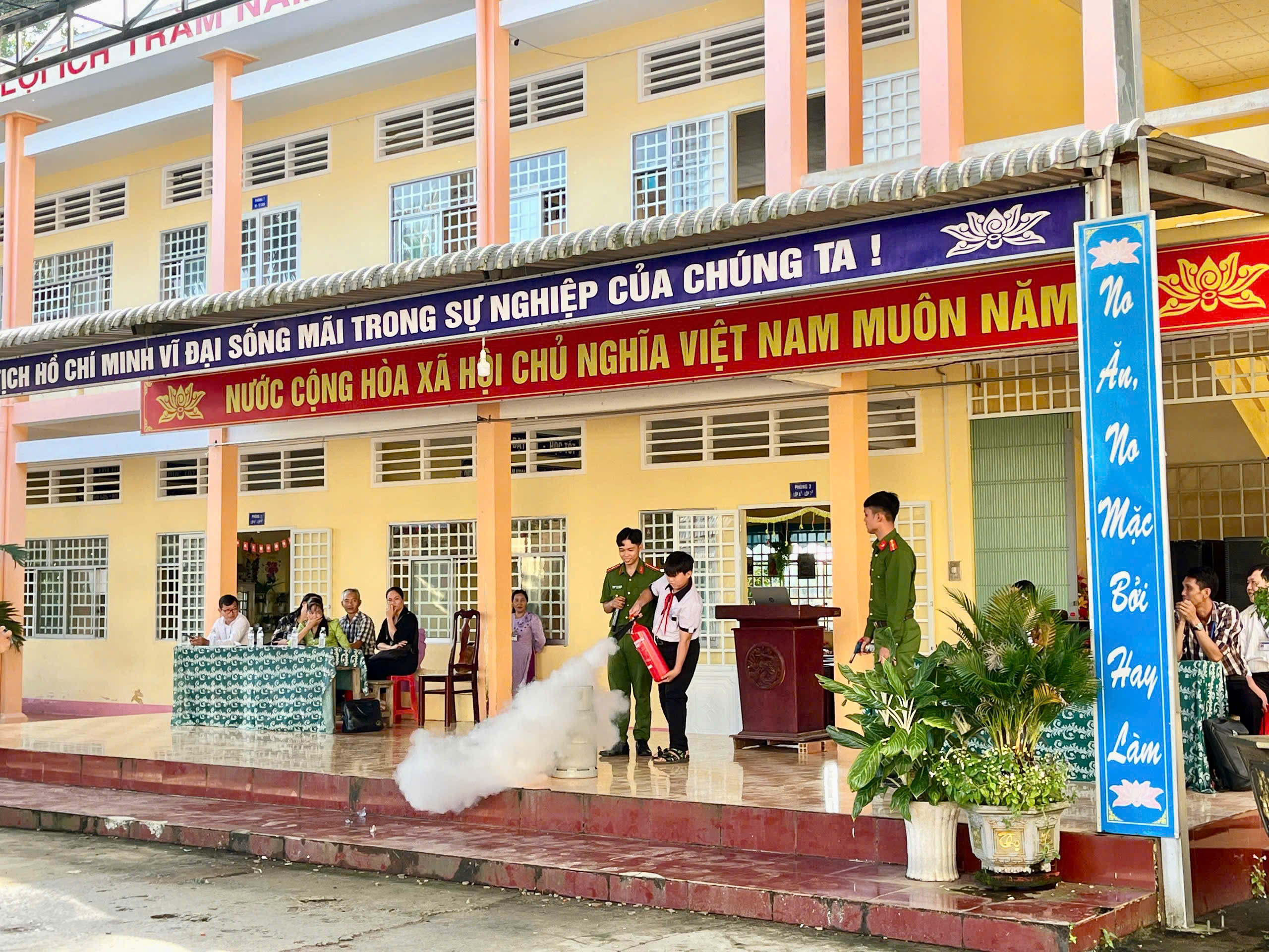Lực lượng Công an cũng phổ biến các quy định về trật tự, an toàn giao thông, đặc biệt là việc đội mũ bảo hiểm, không sử dụng rượu bia khi điều khiển phương tiện và nhắc nhở tình trạng học sinh sử dụng xe đạp điện thiếu an toàn khi đi đến trường. Đồng thời, Công an xã hướng dẫn người dân kỹ năng phòng cháy, chữa cháy, thực hành sử dụng bình cứu hỏa và xử lý tình huống cháy, nổ thường gặp.