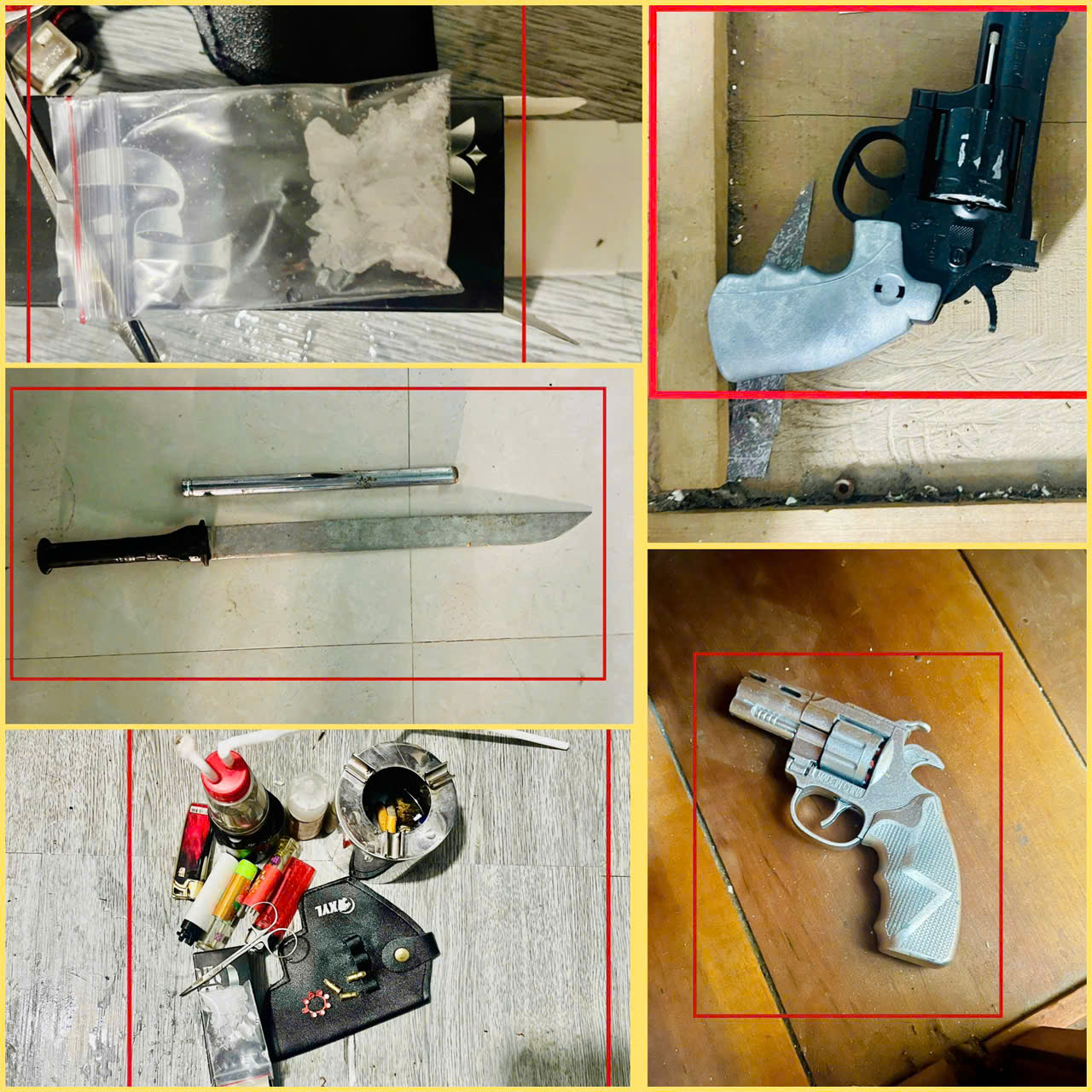 Trước đó, nhận được tin báo từ quần chúng nhân dân có một nhóm thanh thiếu niên đang tụ tập sử dụng trái phép chất ma túy tại một căn nhà số 300, thuộc ấp Nhơn An. Công an xã Nhơn Mỹ đã phối hợp cùng Văn phòng cơ quan Cảnh sát điều tra Công an tỉnh An Giang nhanh chóng triển khai lực lượng tiến hành kiểm tra đột xuất, phát hiện và bắt quả tang nhóm thanh thiếu niên gồm 07 đối tượng đang tụ tập tổ chức sử dụng trái phép chất ma túy. Tang vật thu giữ tại hiện trường gồm: 01(một) bọc nilon chứa chất rắn màu trắng (nghi là ma túy); 02 vật bằng kim lọai có hình dạng giống súng và một số viên đạn (chưa giám định); cùng một số vật dụng dùng để sử dụng trái phép chất ma túy khác.
