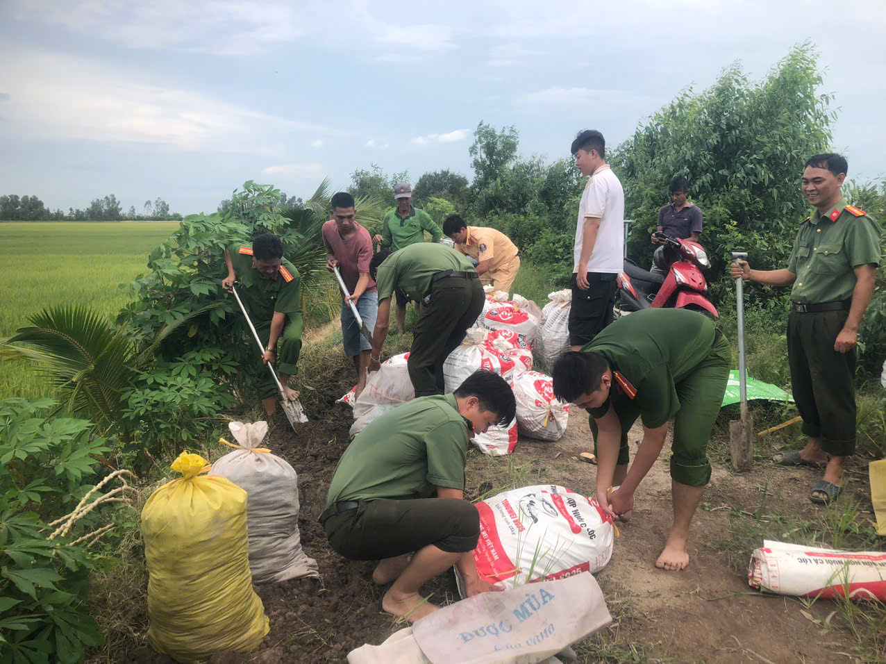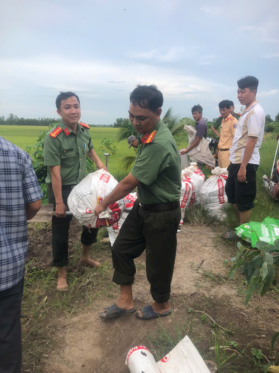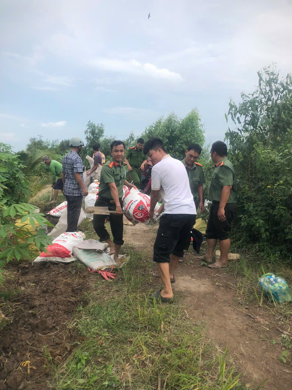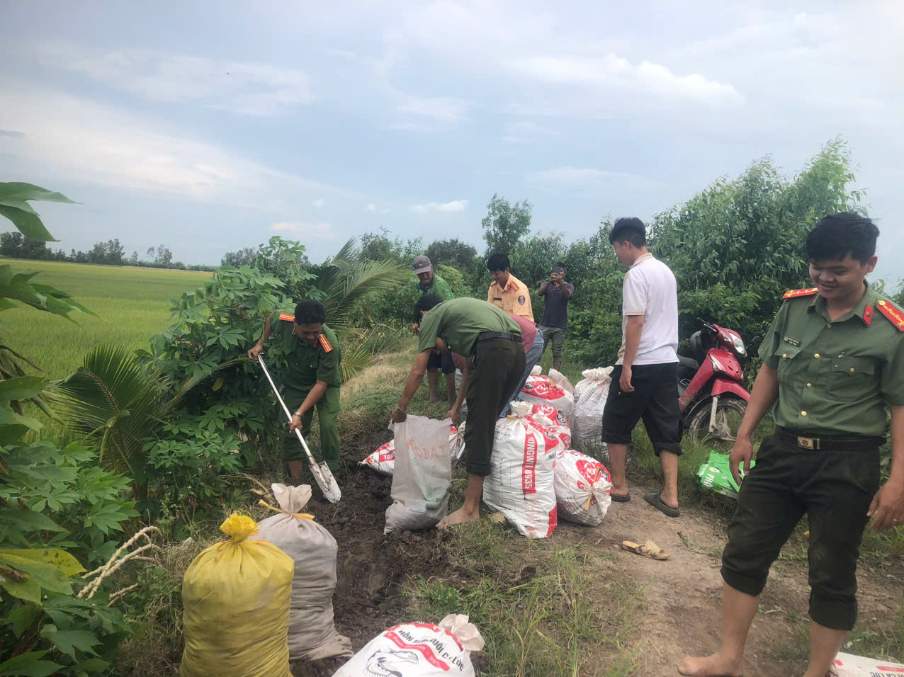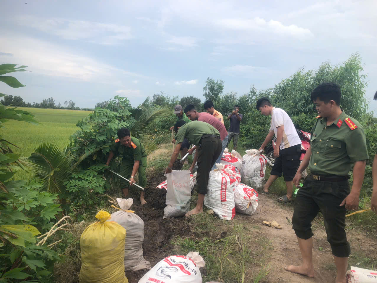 Công an xã Óc Eo đã phối hợp với Phòng nghiệp vụ, Công an tỉnh hỗ trợ người dân gia cố các tuyến đê bao xung yếu, trũng thấp.