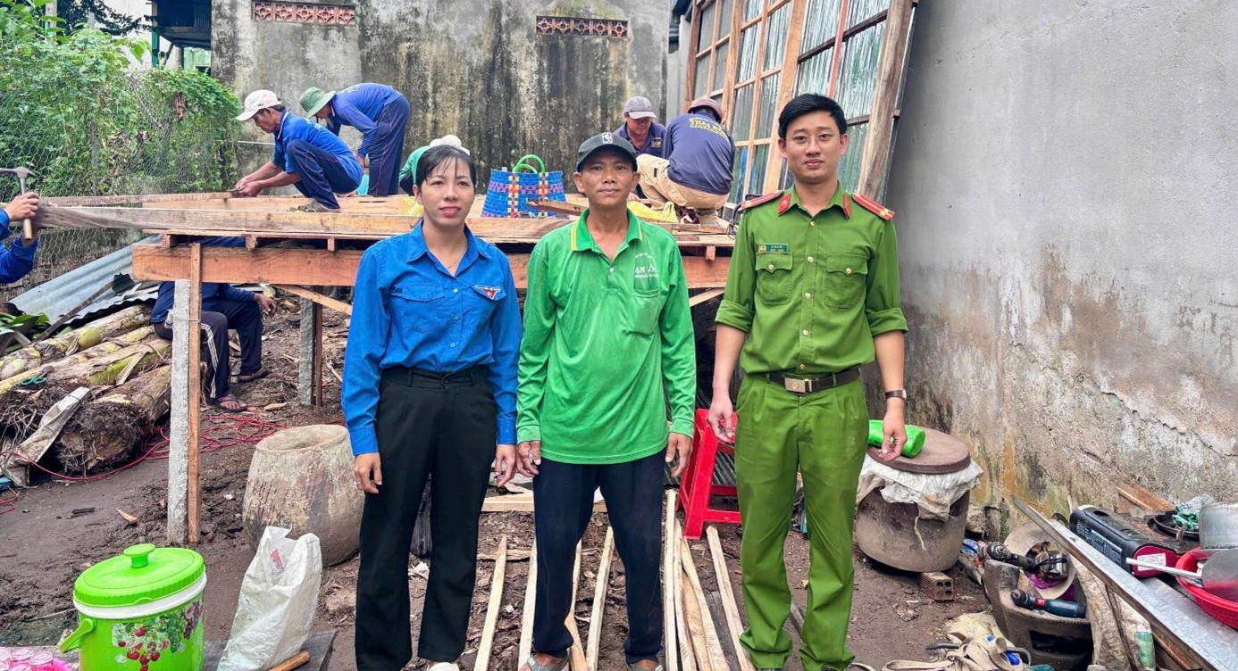 Công an xã Phú An phối hợp với Đội cất nhà từ thiện hỗ trợ cất nhà cho người chấp hành xong án phạt tù tái hòa nhập cộng đồng.