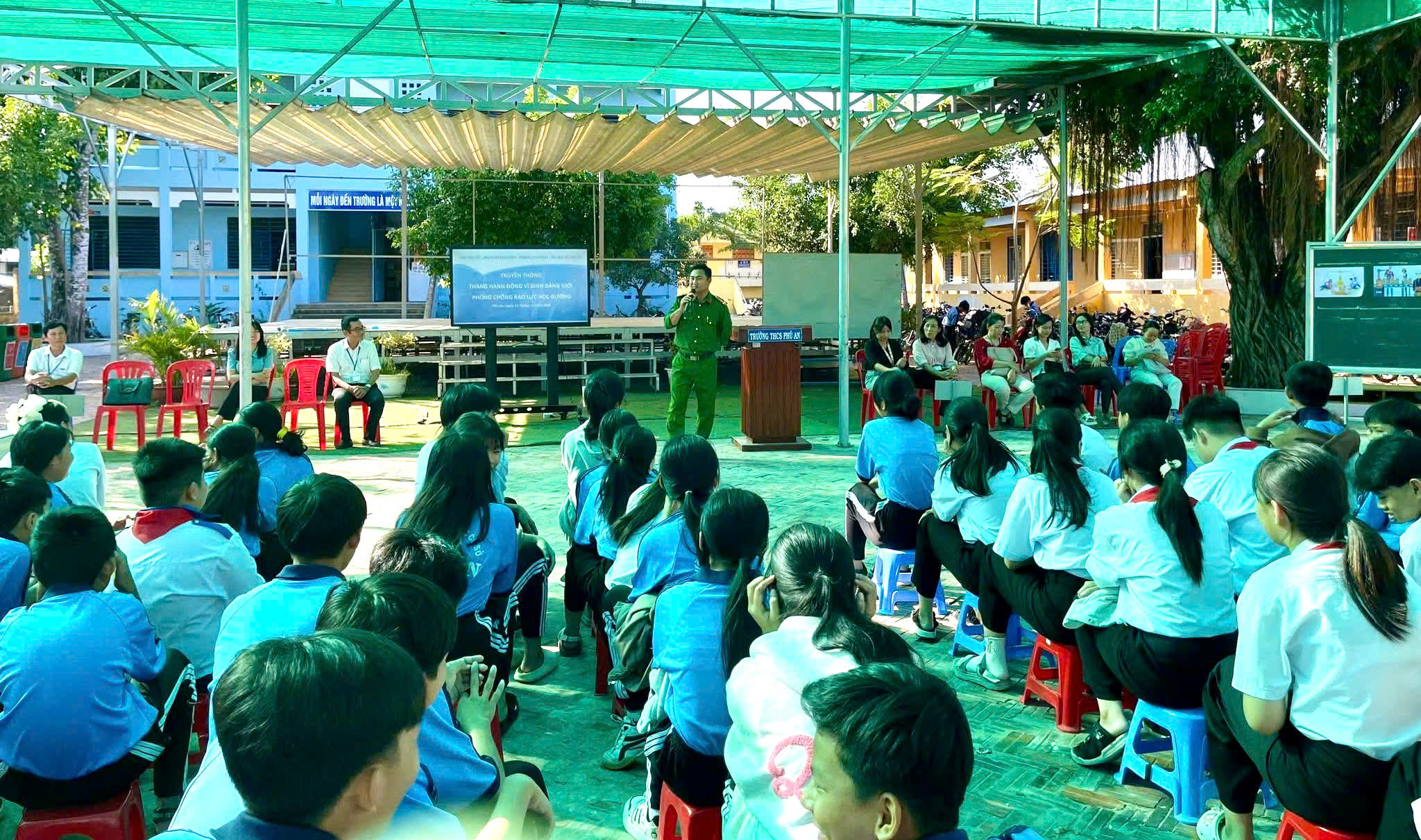 Công an xã Phú An tuyên truyền về phòng, chống bạo lực học đường tại Trường Trung học cơ sở Phú An