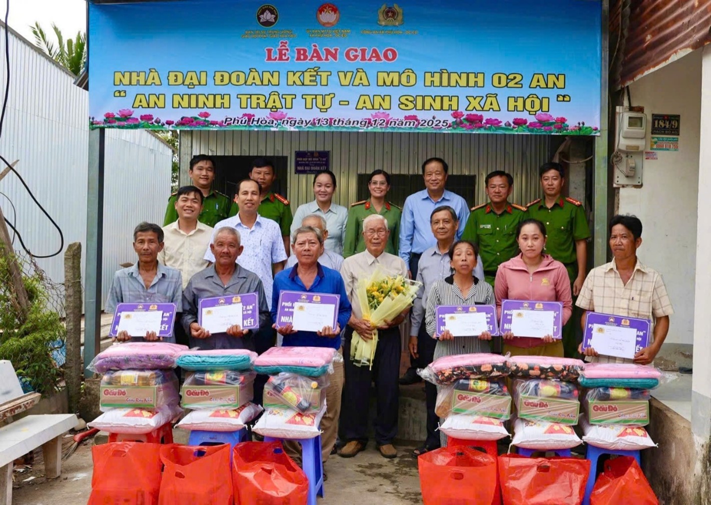 Phát huy tinh thần xung kích, tình nguyện của tuổi trẻ Công an nhân dân và truyền thống đoàn kết, tương thân tương ái của dân tộc, ngày 13/12/2025, Công an xã Phú Hòa tham gia hỗ trợ, phối hợp cùng Giáo hội Phật giáo Hòa Hảo, Ban Trị sự Trung ương và Ủy ban Mặt trận Tổ quốc Việt Nam xã Phú Hòa cùng các ban, ngành, đoàn thể địa phương tham gia xây dựng nhà Đại đoàn kết theo Mô hình “2 AN” trên địa bàn xã Phú Hòa.